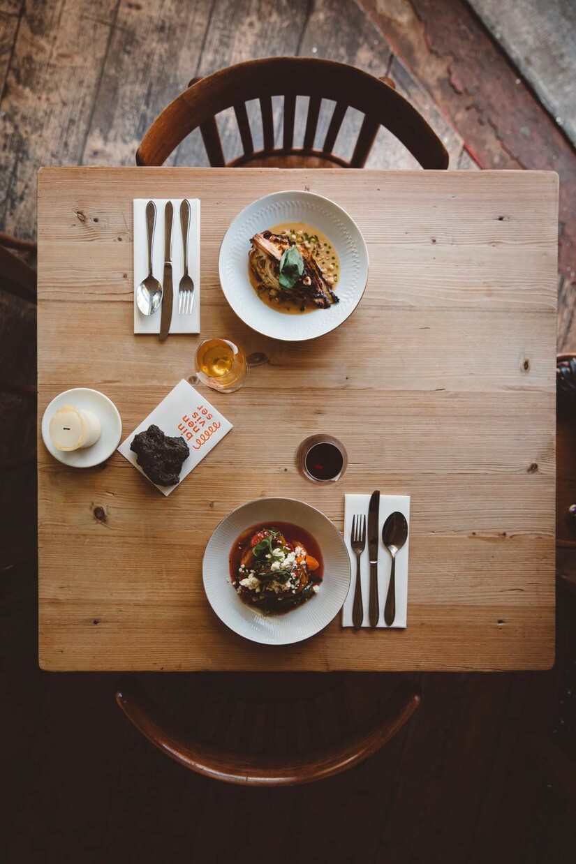 Binnenvisser is trouwens geen visrestaurant, zoals de naam misschien doet vermoeden. De naam kwam voort uit een onderonsje tussen Bob en Maarten. “De Binnenvisserstraat is een straat in de Jordaan waar ik tijdens mijn studententijd woonde. Maarten en ik hebben elkaar er ontmoet, al onze vrienden kwamen er altijd samen. Koken, feesten, iedereen waaide aan. Het waren mooie tijden die iets voor ons betekenden, en we hopen die sfeer op onze gasten over te mogen brengen.”