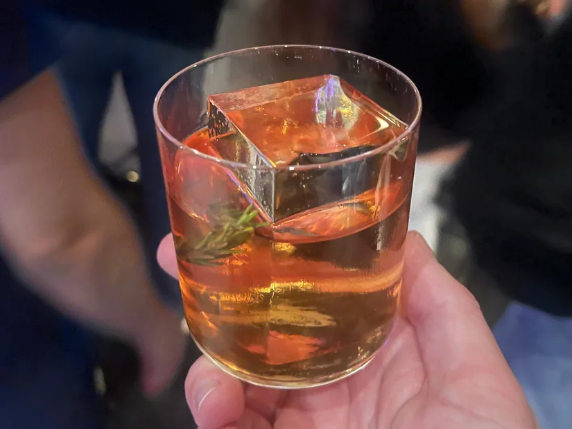 Goed, door naar de cocktails. Die proefden we onder andere bij de lancering van de Old Fashioned week eind vorig jaar. Bij zo’n klassieke cocktail gaat er natuurlijk niks boven het origineel en die kun je hier met een gerust hart bestellen. Perfect uitgevoerd. Verschillende chefs en bartenders ontwikkelden voor dit event echter ook een eigen variant. Die van LuminAir was met Sloe gin, rozemarijn en roze peper. Alsof je na een winterse wandeling bij het warme haardvuur gaat zitten.