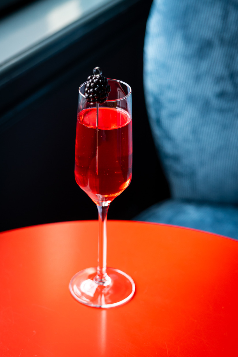 Gemaakt met vodka, gin, moerbeien en een soda met smaken van laurier. Geserveerd in een uitzonderlijk hoge champagneflûte is dit een elegante, complexe en fruitige cocktail. Als een ballerina die op haar spitzen staat.