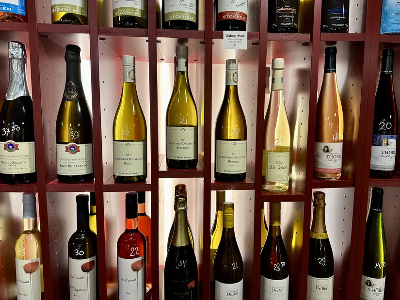 Niet alleen het proeflokaal, maar ook de winkel verdient je aandacht. Hierin zie je de (design)hand van Roos terug. De wijnrekken, het doorzichtige kelderluik en de etiketten: alles is een lust voor het oog en heeft een bijzonder verhaal. Ook werken Roos en Diederik aan het opzetten van een private dining concept, waarvoor op dit moment de ruimtes stijlvol worden ingericht.