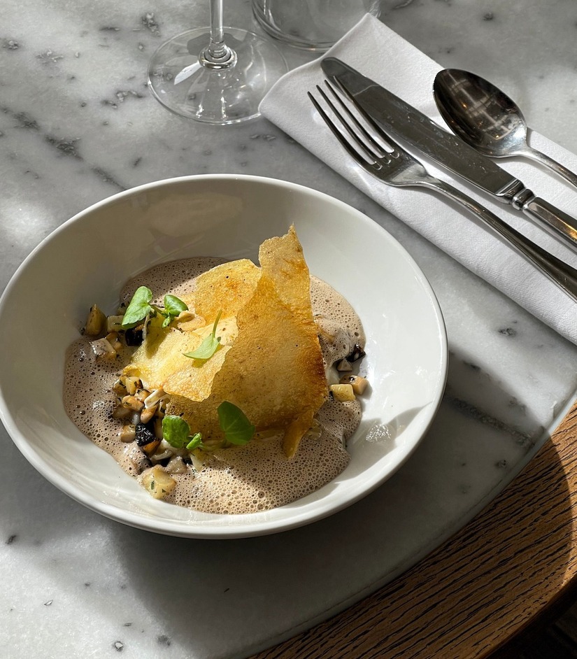 ‘‘Dat is toch wel de wilde tartaar. Een steak tartaar van rund en hert met rode biet. Maar ook het gepocheerd eitje met knolselderij, koningsboleet en truffelsaus vind ik erg lekker en mooi. In de laatste zitten een paar van mijn favoriete producten: knolselderij, ei en natuurlijk truffel. Ik ben gek op truffels. Die laatste zit ook in ons Truffelmenu.’’