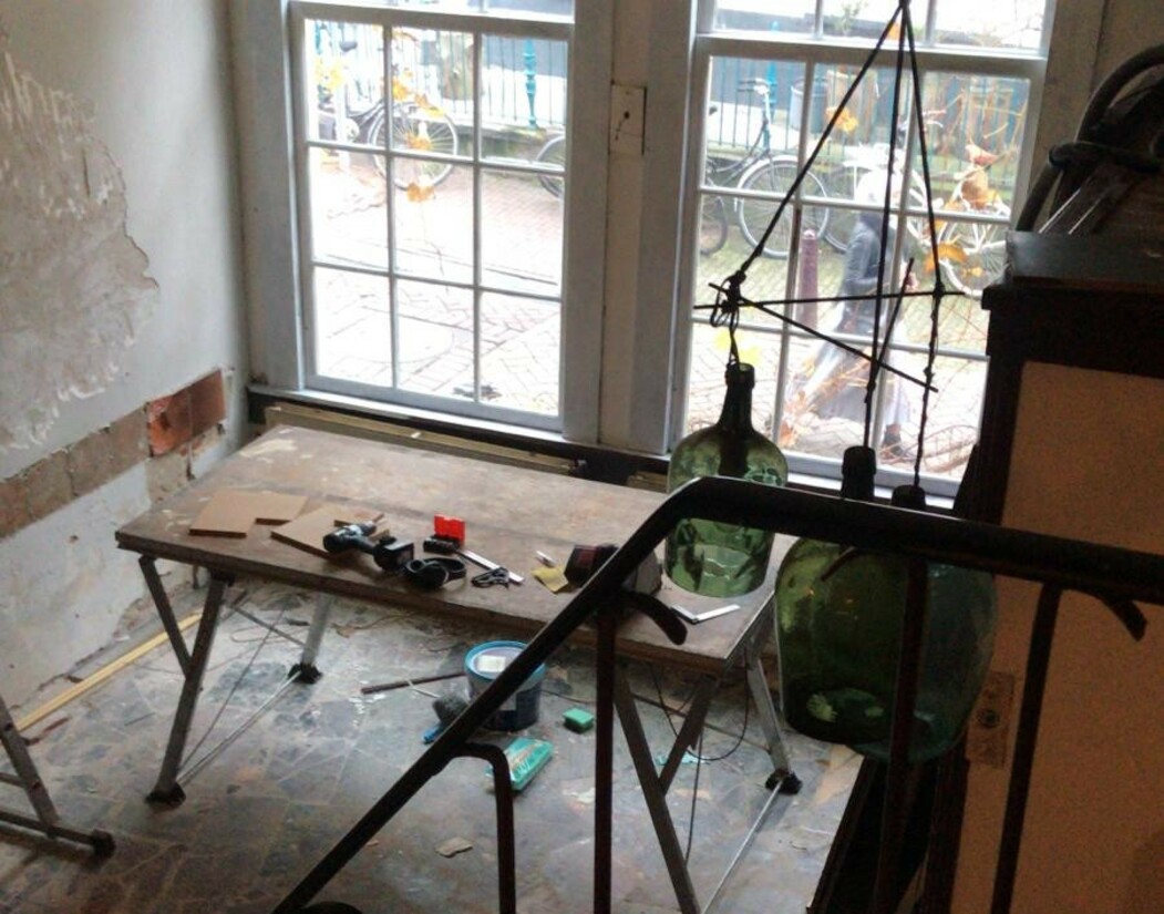 Nog even doorwerken dus. Hoewel het authentieke Amsterdamse pand van zichzelf al veel sfeer heeft zijn er voor het intrekken van de Watergang nog wel wat plannen. Er moet nog een bar komen en momenteel zijn ze aan het verven. Best zwaar, maar het gaat om het resultaat. “De gezelligheid zit al in het gebouw zelf, daar hoeven we niet veel voor te doen. Het is een kleine ruimte, met hoge plafonds.” Voordat Mo en haar team hier met de Watergang introkken, zat er La Cacerola. Mo geeft er haar eigen draai aan. “La Cacerola maakte gebruik van weinig licht met veel kaarsen en maakten het zo gezellig. Wij willen meer licht. We gaan het wat frisser maken.”