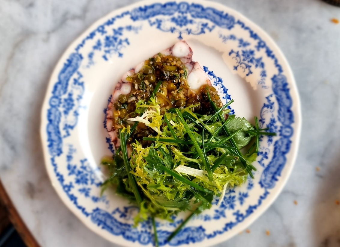 De tweede zaak van Angelo Kremmydas, vernoemd naar de oude Griekse naam van Marseille. Angelo opende zijn zaak in Oost op het Beukenplein en het is een fijne voortzetting van zijn eerste zaak (Gitane, in West) in een Frans Mediterrane sfeer met tinten van donkerblauw en terracotta. Er staan veel Griekse accenten op de kaart zoals dolmas, een Griekse stijl côte de boeuf en loukoumades. Inclusief een groot terras aan de straatzijde. Lees hier meer over ons bezoek aan Massalia Restobar.