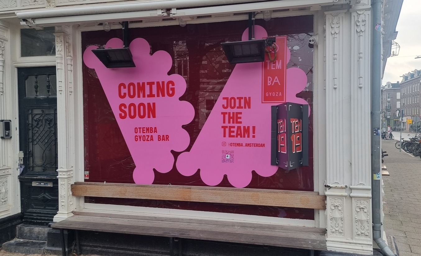 Otemba, dat we kennen van de ramen in de Kinkerstraat, opent in februari een echte gyozabar in het oude pand van burgerzaak Geflipt tegenover de ingang van de Albert Cuyp Markt.