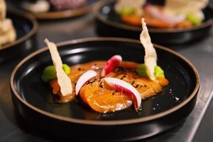De Kop van Oost is een ruime, speelse en lichte zaak. De gehele gevel is gebouwd van glas, waardoor het lijkt alsof je in een kas aan het water dineert. Hierdoor kun je het gehele jaar door genieten van de sprekende locatie, aan het water, met uitzicht op de molen van Brouwerij ’t IJ. De inrichting is industrieel en zeker niet standaard te benoemen. Ontworpen door designer Rein Rambaldo, die ook het interieur van Mama Kelly heeft verzorgd. Wie het interieur daar kent, weet dat dit allesbehalve simpel is. En ook hier heeft hij een opvallend, buitengewoon interieur bedacht. Marmer, fluweel, printjes en kleuren als donkerblauw en paars zetten hier de toon.