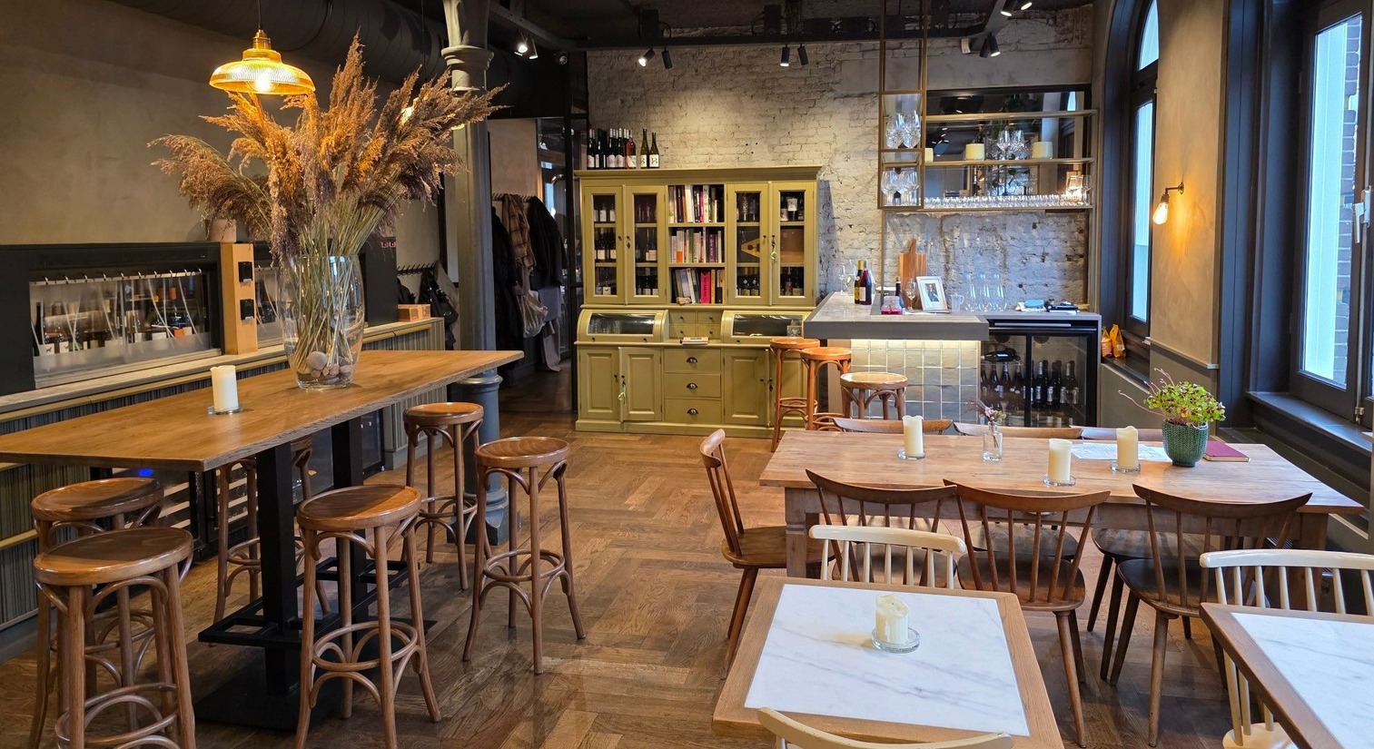 De filosofie is glashelder: wijn moet gewoon lekker zijn. Hier geen vaste kaart, maar steeds wisselende verrassingen — allemaal per glas verkrijgbaar en nooit boven de tien euro. De instapper? Een witte Bourgogne voor €6,50.