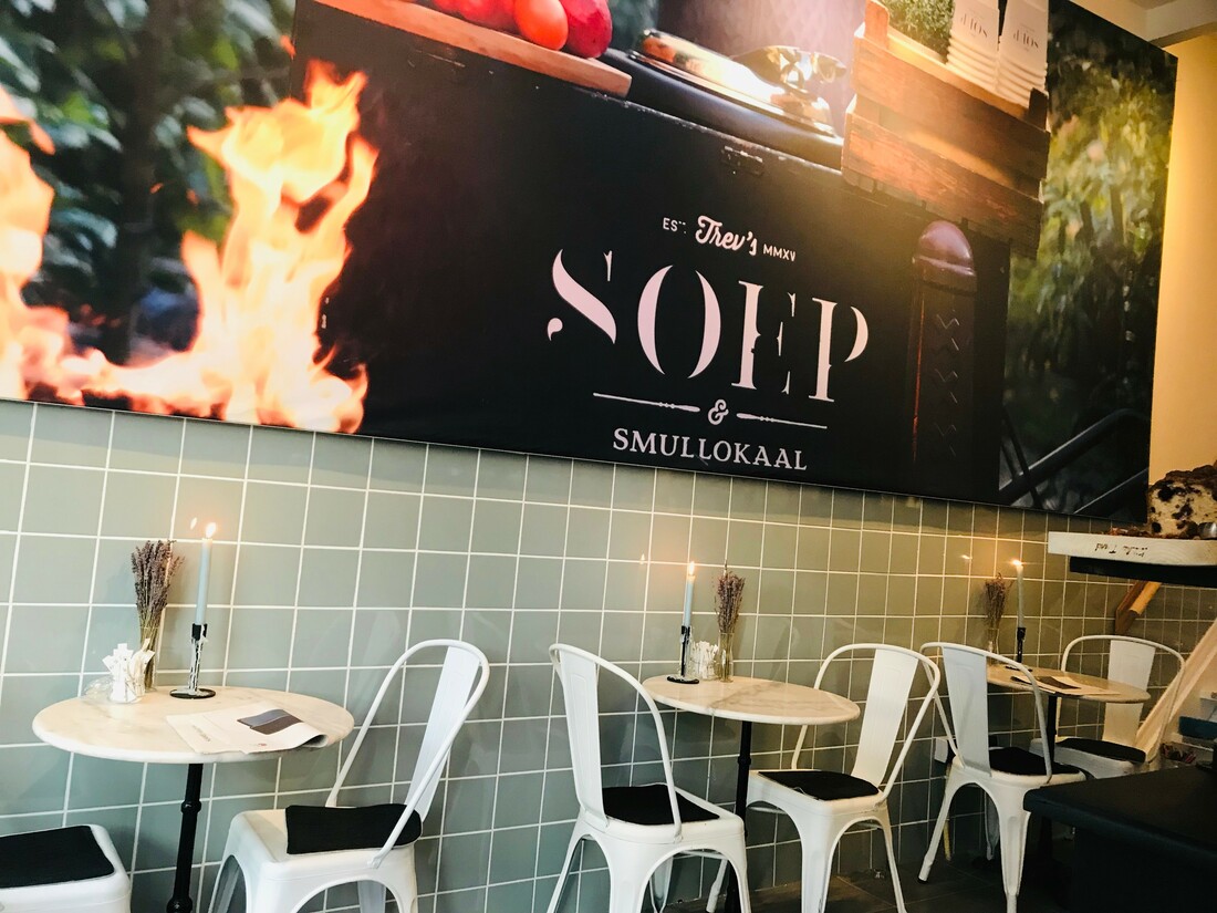 Wat een geluk voor ons dat Trev en Eva uit de televisie- en reclamewereld zijn gestapt en in de wereld van soep zijn beland. Dat betekent namelijk dat Amsterdammers (en iedereen die de stad bezoekt) tegenwoordig elke week uit zes verrassende en heerlijke soepen kunnen kiezen. Of uit een bijzondere salade of broodje trouwens, maar met zulke lekkere soep kom je daar waarschijnlijk niet aan toe. Komende periode reis je niet meer naar de Wibautstraat af voor een ijsje, maar voor smakelijke lunch of gemakkelijke avondmaaltijd.