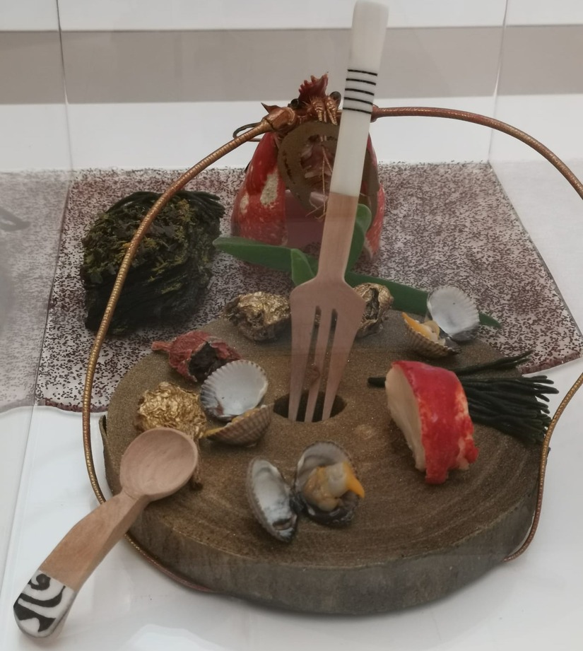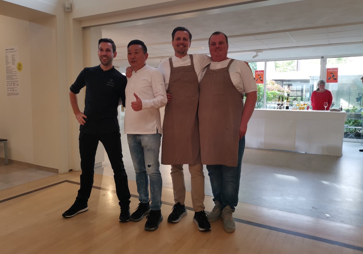 Ming van Micaro creëerde met mukimono, de Japanse decoratieve eetsnijkunst, van dunne plakken tilapia een Aziatische geluksvogel die met wat soja en wasabi zo gegeten kon worden. Tussendoor serveerden de chefs wat hapjes geïnspireerd op de kunstwerken.