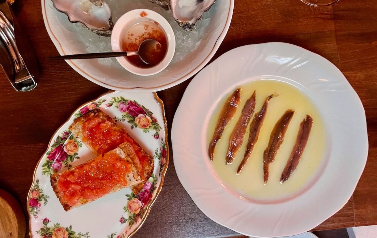 Mooie gerechten aan de bar bij Bistro de la Mer