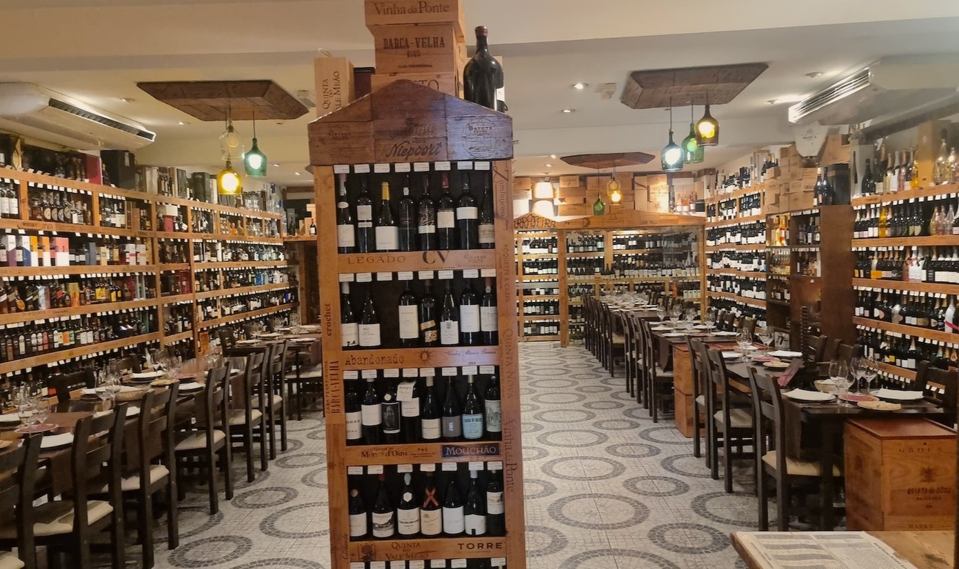 Is het een wijnwinkel of een restaurant? Het is beide. Probeer een tafel in het achterste deel te reserveren. Daar zit je midden tussen de stellingen met flessen wijn. Hier zijn de prijzen op de fles, de prijs voor drinken in het restaurant. Een kleine cursus Portugese wijnen kan geen kwaad. Of beter: loop even lekker door de zaak en laat je adviseren voor het personeel.