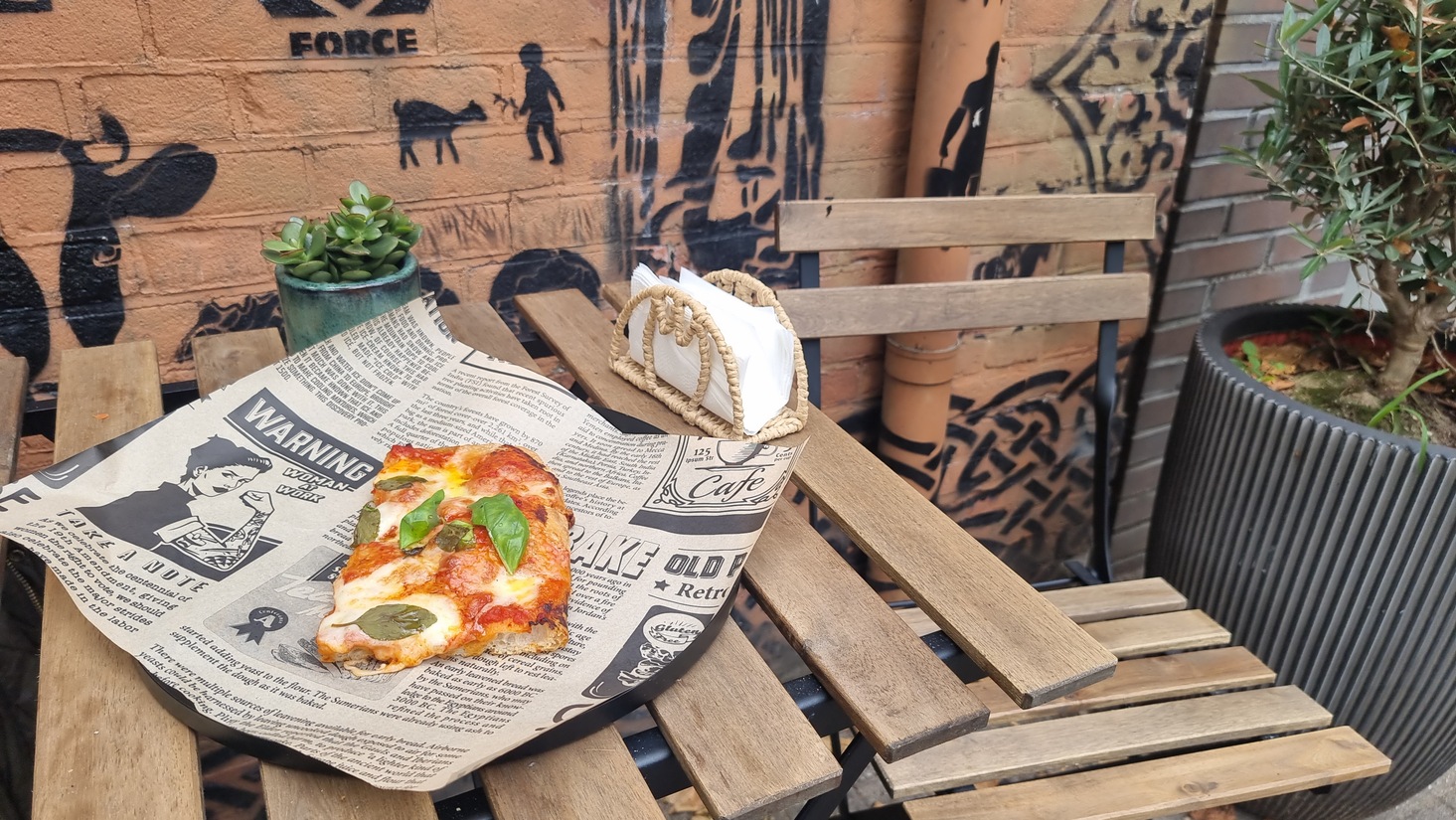 Het beste adres in Amsterdam voor ‘pizza al taglio’ vind je vlak bij de Albert Cuypmarkt. Tussen Kaldi en is klein loketje waar ze de lekkerste pizza per stuk maken.