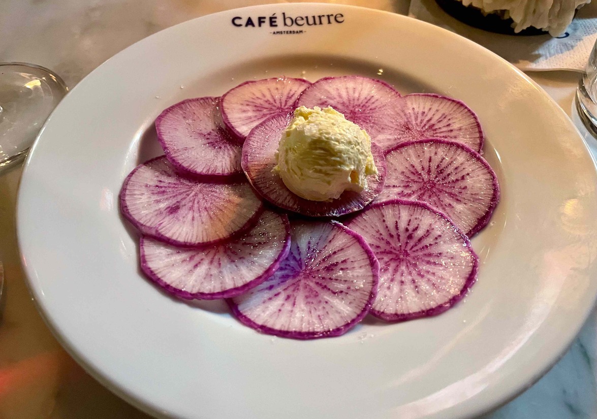 Simonette Verwoest is vanaf het eerste uur fan van Café Beurre: "Vegetarisch eten zonder er een ‘ding’ van te maken. Door de rijke keuken van Karin Gaasterland missen zelfs die-hard vleeseters niets. Heerlijk om niet te hoeven reserveren, dat maakt de sfeer relaxed, een soort buurtrestaurant, en daarmee precies zoals gastheer Kim het voor ogen had."