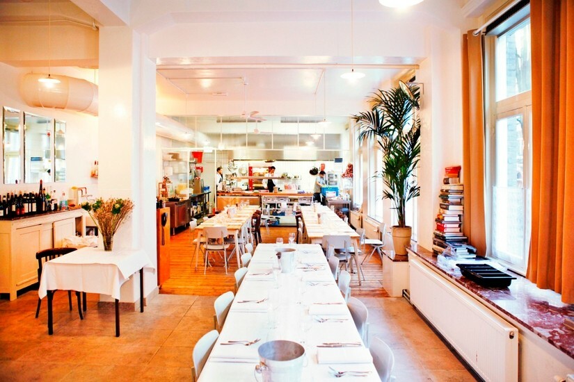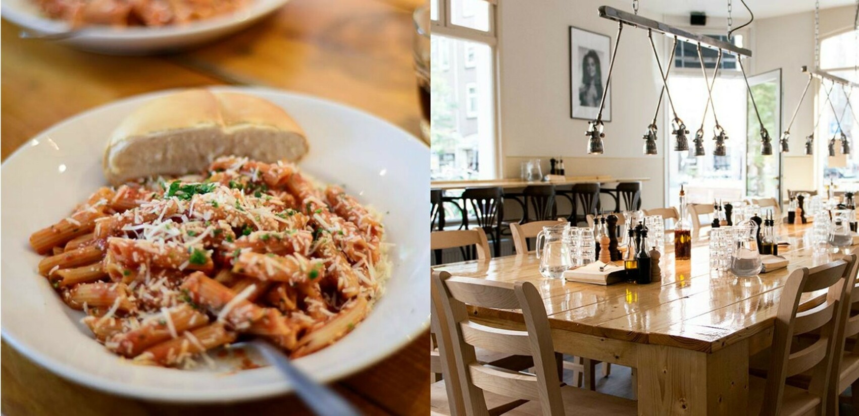 Als inmiddels 'keten' een beetje een vreemde eend in dit lijstje, maar we houden nou eenmaal van de ongedwongen sfeer bij Spaghetteria. De vestiging in de Pijp is favoriet, omdat je daar de meeste kans hebt op een plekje. Je schuift gezellig aan bij wie er ook maar aan tafel zit, weet dat pasta nummer 1 (arrabiata) altijd een goed idee is - en nog vega ook - en je weet ook dat een eenvoudig 'vorkje prikken' zomaar kan uitmonden in een avond lang wijn drinken en kletsen met de buren. Dat ze hier geen thee en cappuccino serveren helpt natuurlijk ook mee aan het 'nog maar een wijntje dan'-fenomeen. Al mag de tiramisu er ook wezen hoor, lekker romig.