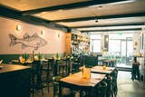 Natuurlijk ontbreken bij het visrestaurant in Amsterdam-Zuid ook de oesters niet op de menukaart. Naast de oesters per stuk op klassieke wijze (met rode wijnazijn, sjalot en citroen - dagprijs), zijn er hier drie varianten: gebakken, gegratineerd en Oosters. De gebakken oesters komen met aardappelmousseline, spinazie en jus, de gegratineerde met tomaat en gruyère en de oesters op Oosterse wijze met mihoen, sambal en teriyaki (3 stuks - €22,50).