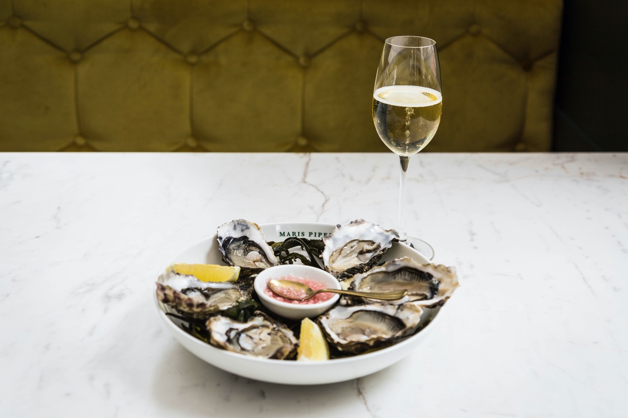 De oesters bij Maris Piper zijn Bretonse creuses. Je kunt ze 'gewoon' rauw of gegratineerd met spinazie, truffel en Hollandaise bestellen in deze posh brasserie in De Pijp.