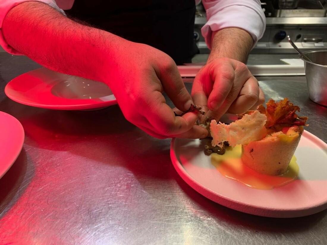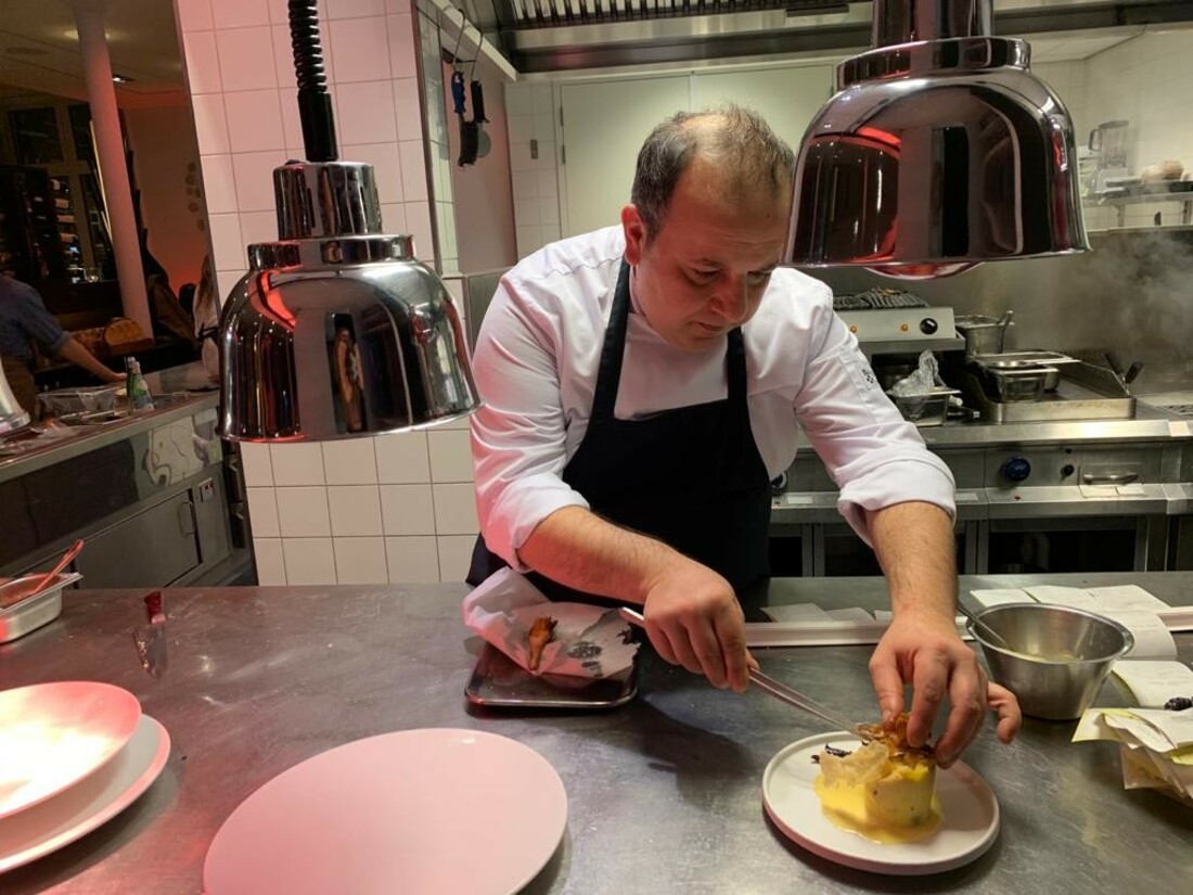 We worden zeer gastvrij ontvangen door het team van Enoteca. Chef Salvatore zwaait de scepter in de keuken en dit gaat op heerlijk gepassioneerde wijze zoals je dit ook in Italië ziet. Naast het restaurant bedient de keuken van de chef ook de roomservice: multitasking op niveau. De sfeer is goed. De inrichting van het restaurant is strak en ‘clean’ met houten vloer, licht houten stoelen, hier en daar wat tinten bruin en zwart en een open keuken.