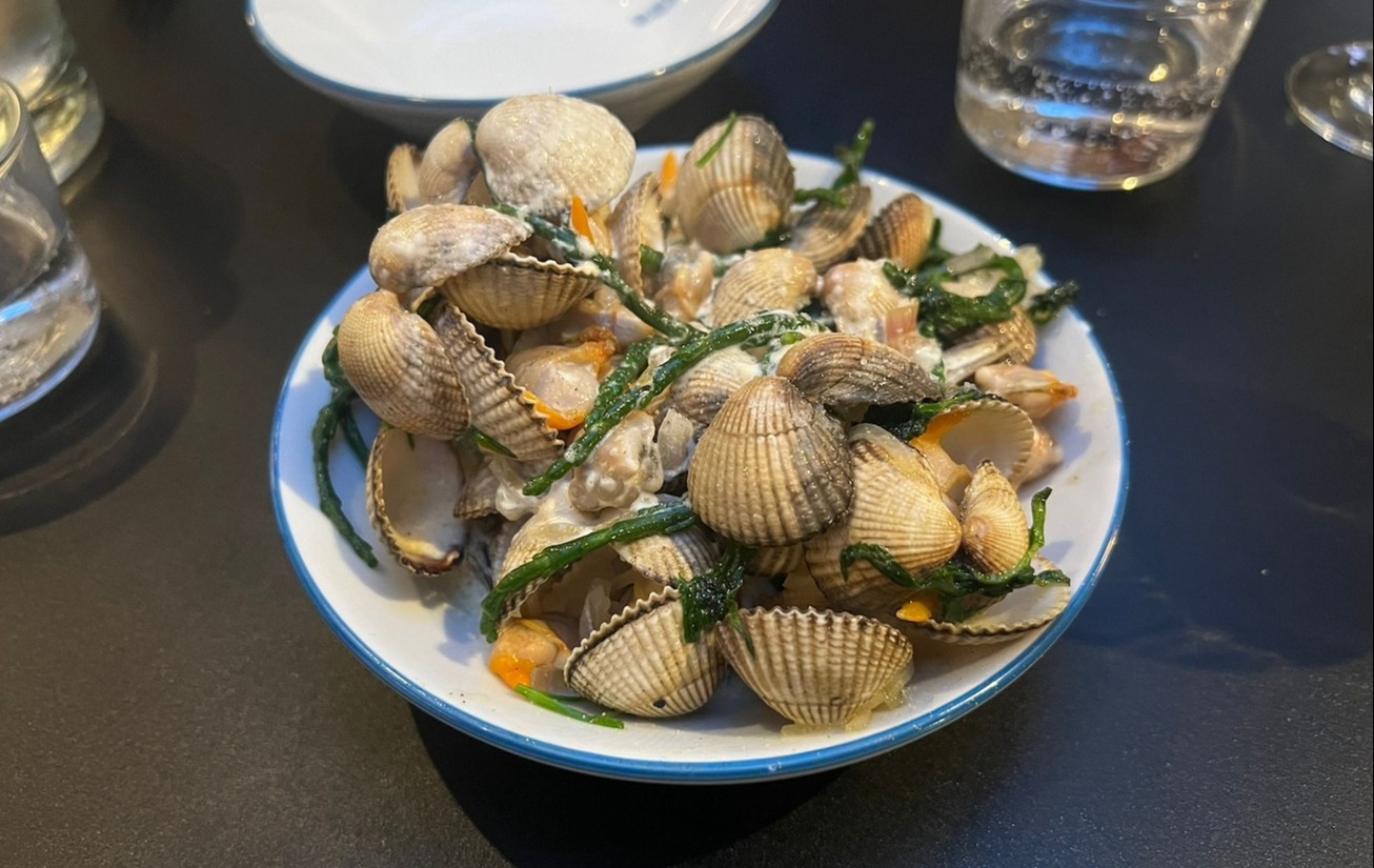 Bij binnenkomst is wel duidelijk dat het pand een facelift heeft gekregen. Nonchalant gestyled, iets te harde muziek, veel jonge mensen. Er hangt een fijne vibe. Het restaurant is nog enigszins in opstart merken we, maar het team heeft er duidelijk zin in. We beginnen met een aantal snacks en bordjes die al dan niet te delen zijn.