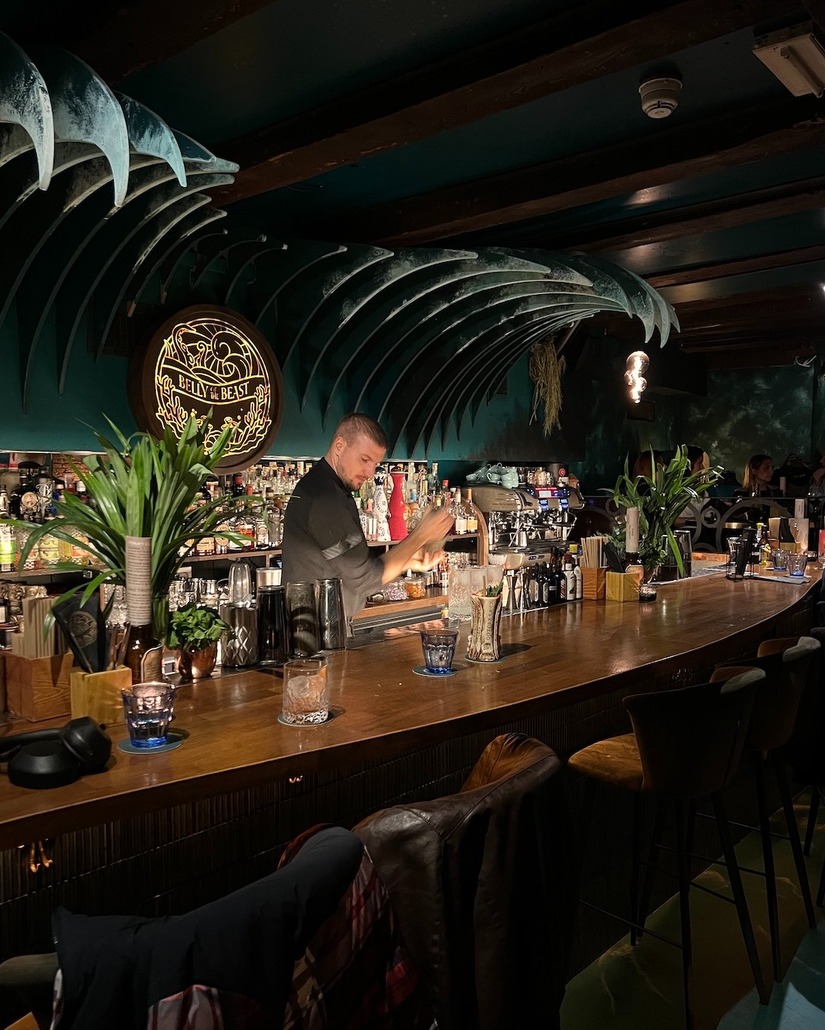 We kunnen niet zeggen dat we niet gewaarschuwd zijn. Afgaande op de muziek van Disneyfilm Ariël, op repeat gedraaid in de WC, begeeft deze cocktailbar zich namelijk ergens ‘diep in de zee’. Maar ja, de cocktails zijn wel van internationaal gelauwerd bartender en eigenaar Tess Posthumus. Er zit voor die andere Buik dus niks anders op dan het gevaar te trotseren.
