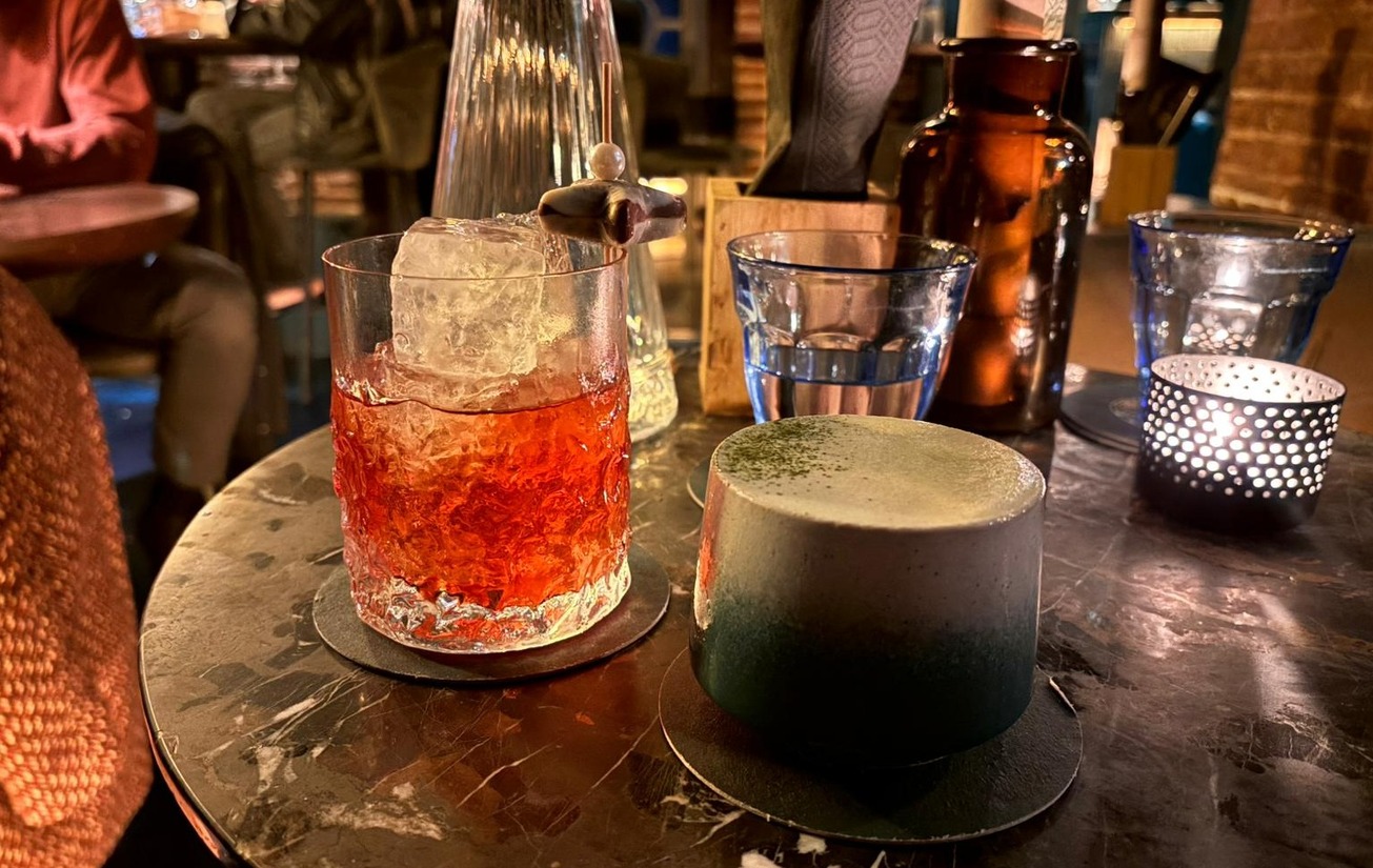 Als een stel zwakke zeelieden laten we ons na deze roep alsnog verleiden tot een derde ronde: een Matcha Monstah als dessert en de Coconut Reef Negroni als digestief. Matcha is tegenwoordig geen ontkomen aan in Amsterdam. Hier wordt het verwerkt tot een zachtgroene milkshake met stevig wat cognac, witte chocolade en vanille-ijs. De Matcha is goed gedoseerd, het kan soms snel overheersen, maar advies is wel om hier mee te starten in plaats van te eindigen.
