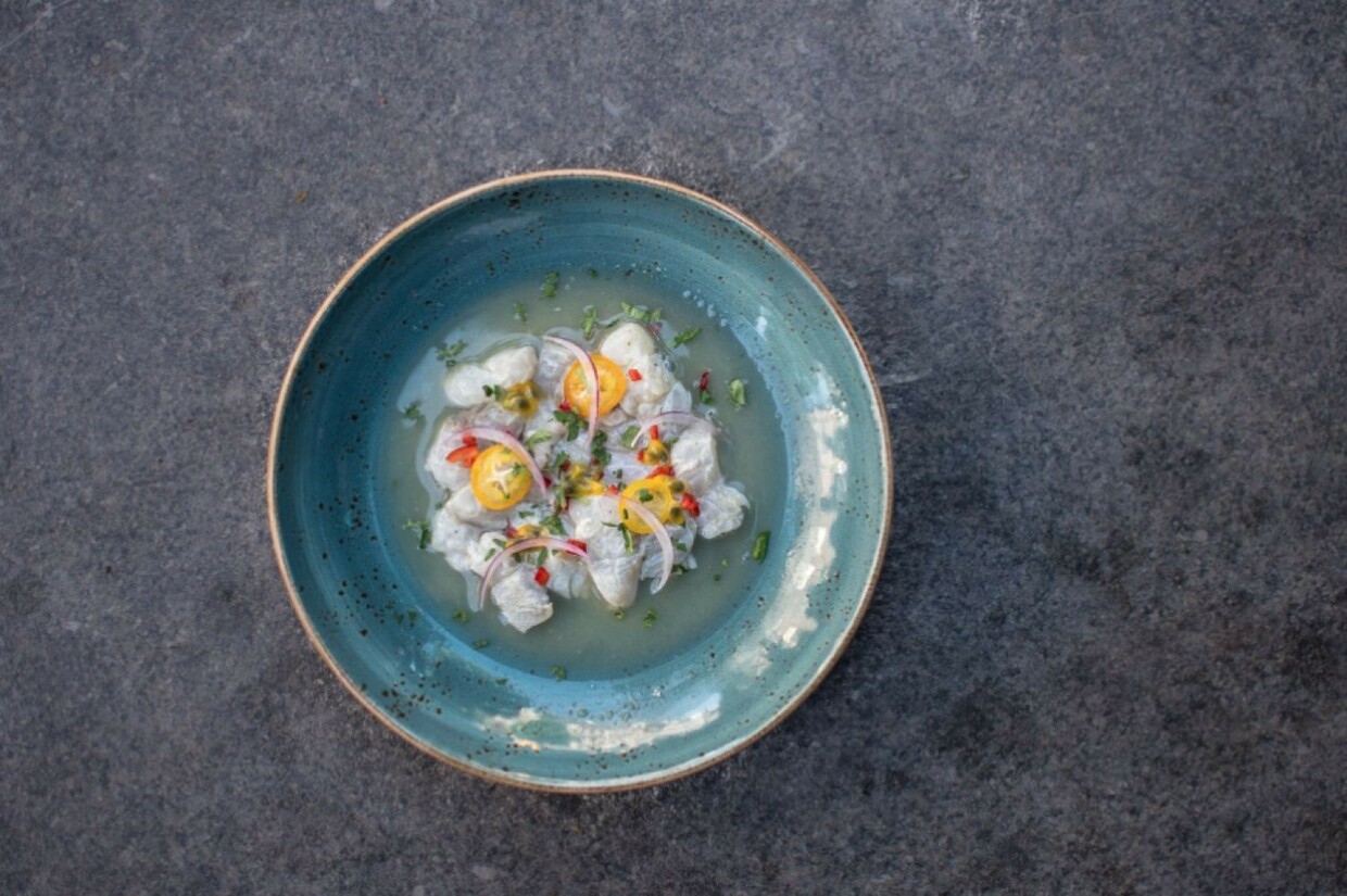 De tweede ronde bestaat uit taco’s. Een absolute aanrader. Onze minitaco’s zijn gevuld met krokant gebakken varkensvlees en ananas. Na de taco’s wordt de tafel vol gezet met verschillende soorten ceviche. Ceviche is een typisch Zuid-Amerikaans gerecht waarbij rauwe vis in zuur ‘gegaard’ wordt. Wij krijgen de traditionele ceviche met limoen, rode ui en mais en de Japanse variant met zeewier en bananenchips. De traditionele ceviche heeft unaniem onze voorkeur. Ook aan onze vegetarische tafelgenoot wordt gedacht en bij elke ronde staat er dan ook een vis- en vleesvrij gerecht op tafel, zoals gebakken aubergine met tomaat en gegrilde worteltjes met manchego.