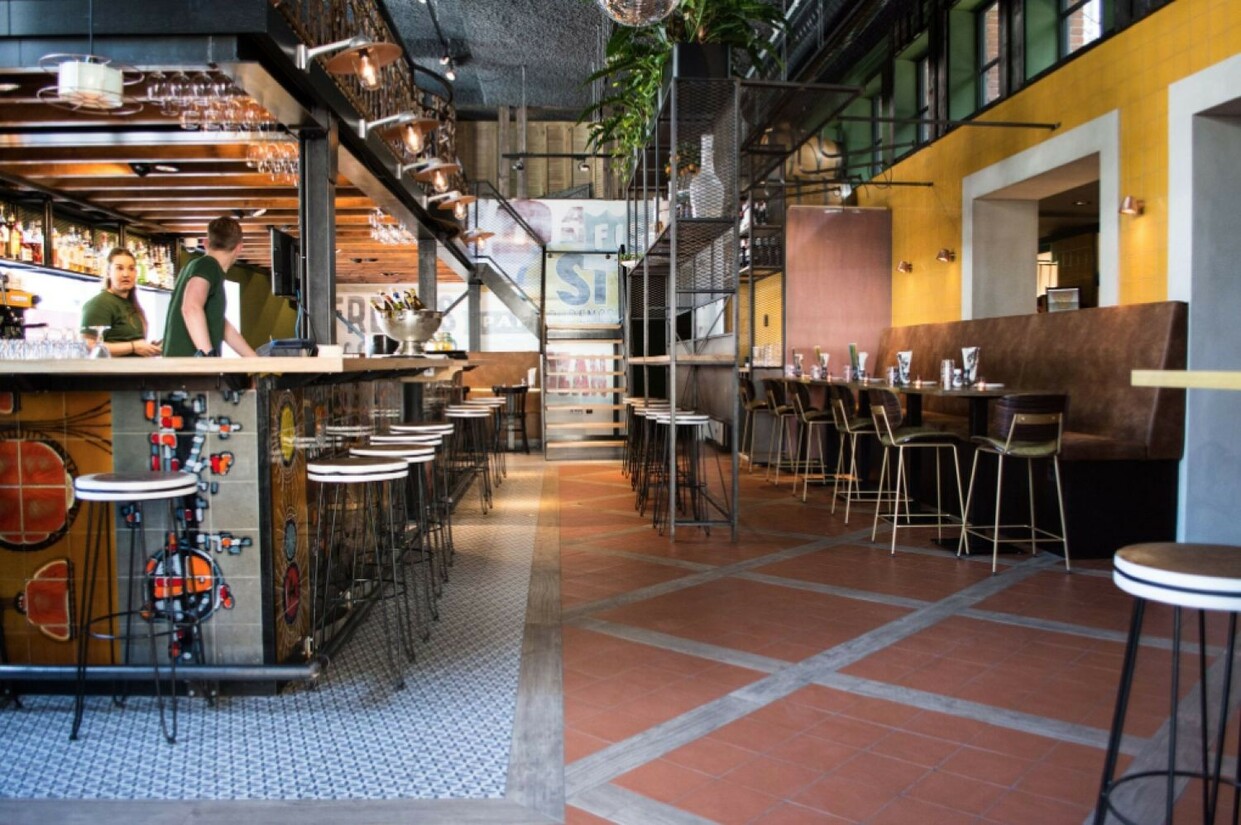 Als je binnenkomt in deze ruim opgezette zaak, word je meteen vrolijk van de okergele, roze en groene muren. Je waant je in een cerveceria in Madrid of Sevilla. De ruimte bestaat uit drie delen, waardoor het ruim en tegelijkertijd heel knus aanvoelt. We hebben niet gereserveerd, wat wel aan te raden is op een zaterdagavond. Omdat er een reservering niet is komen opdagen hebben we mazzel en kunnen we meteen aanschuiven aan een van de lange tafels.