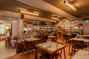 Bram Kortekaas verwelkomt met stevige handdruk en een warme glimlach. Waar je normaal niet om 18:00 uur al aan een tafeltje wilt zitten, is dat hier geen probleem. Binnen no-time zit het hele restaurant vol. Van zakendiners en stelletjes tot vriendengroepen en familiefeestjes. Het is een gemengd publiek, maar allemaal hebben ze een ding gemeen: een brede glimlach op het gezicht. Er hangt een ongedwongen, intieme sfeer. We hebben de neiging om rond te lopen en een praatje te maken met mensen. Een beetje in de voetsporen van Bram Kortekaas, die iedereen bij binnenkomst een stevige handdruk en een warme glimlach geeft.