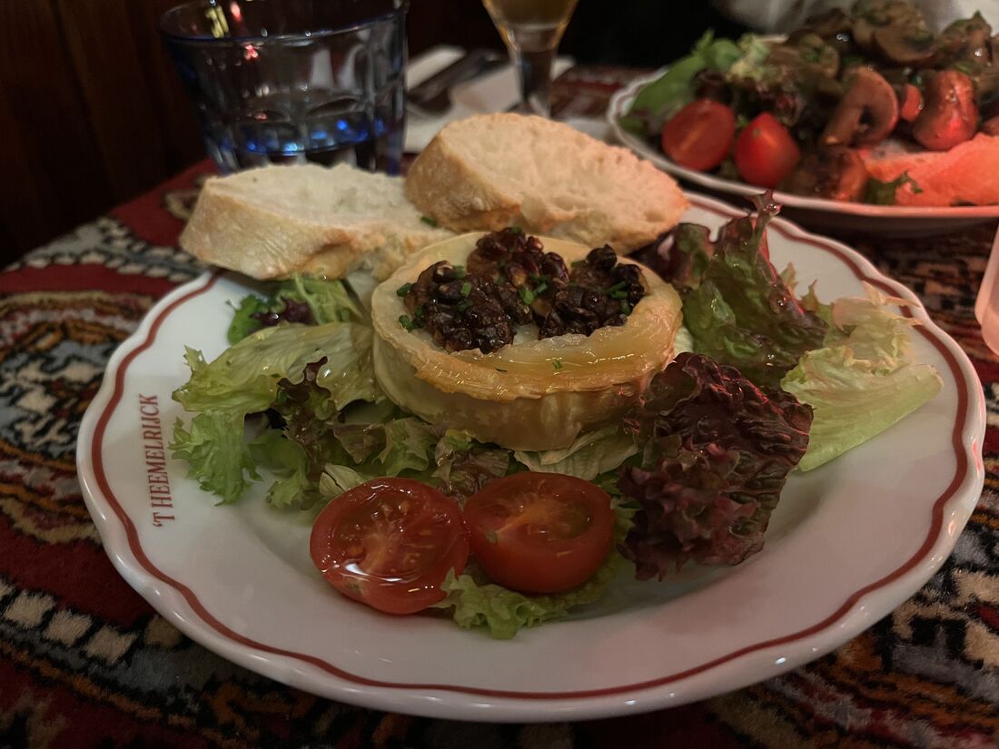 Wij vielen voor de ‘geitenkaas uit de oven’ en de 'champignons gebakken in knoflook op toast’. Twee goedgevulde borden stonden even later bij ons op tafel. De omschrijving op de kaart was rechttoe rechtaan want zonder enige poespas was dit precies wat we kregen. Goed, misschien met wat sla, nootjes en twee stukjes stokbrood. Voor ons het bewijs dat het niet altijd veel of spannend hoeft te zijn om lekker te wezen.