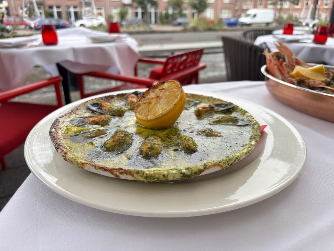 De kaart van Bisous, wij zijn fan van de oesters en de carabineros (rode Spaanse garnalen)