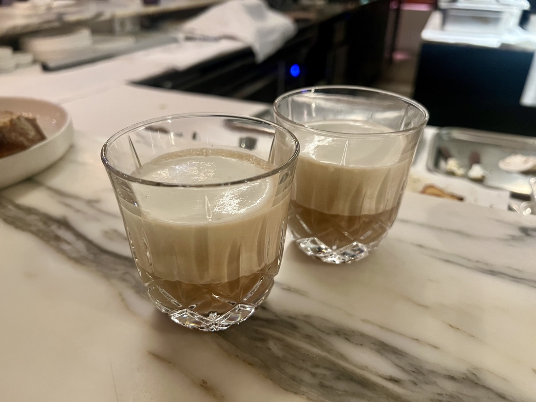 Dan volgt een diepe kreeftenbisque met een dikke laag kefir schuim. Opgediend als een cappuccino en voor 9 euro een heel mooi tussengerecht.