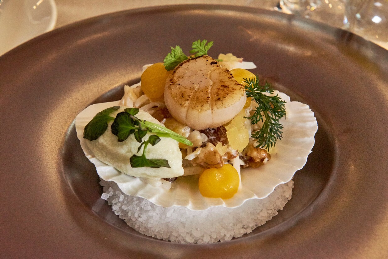 Bij dit hoofdgerecht blijft het echter niet. Nee, er volgt zelfs een tweede, te weten een moderne, verfijnde versie van de welbekende Oud-Hollandsche hachee. Een zeer mals stukje runderwang is samen met wat knolselderij en gepofte wilde rijst een bijzondere creatie op ons bord.