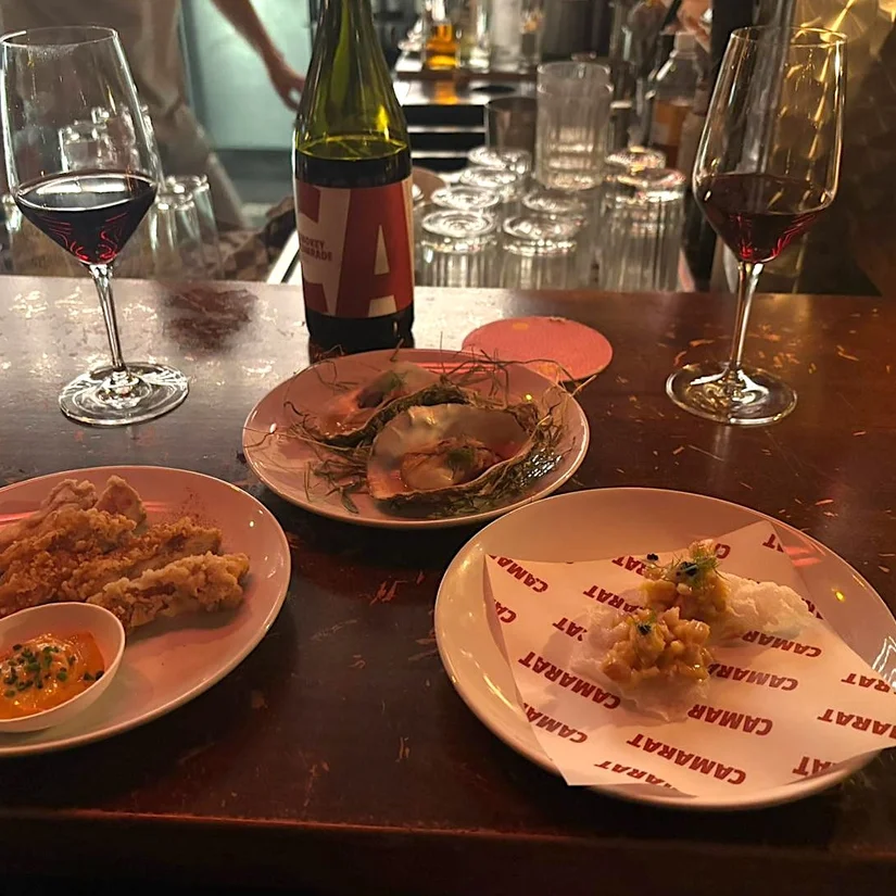 Ontstaan uit een jarenlange vriendschap en de gezamenlijke liefde voor de bon vivants, hebben eigenaren Beau en Ruben afgelopen najaar de deuren van Camarat geopend. Al kon de ruimte hier en daar een oppimpbeurtje gebruiken was de plek, als inwoner van urban winery Chateau Amsterdam, een ware Bourgondische match. En vandaag de dag ademt Camarat dan ook Amsterdam-Noord: een plek waar alles en iedereen hip en mooi is.