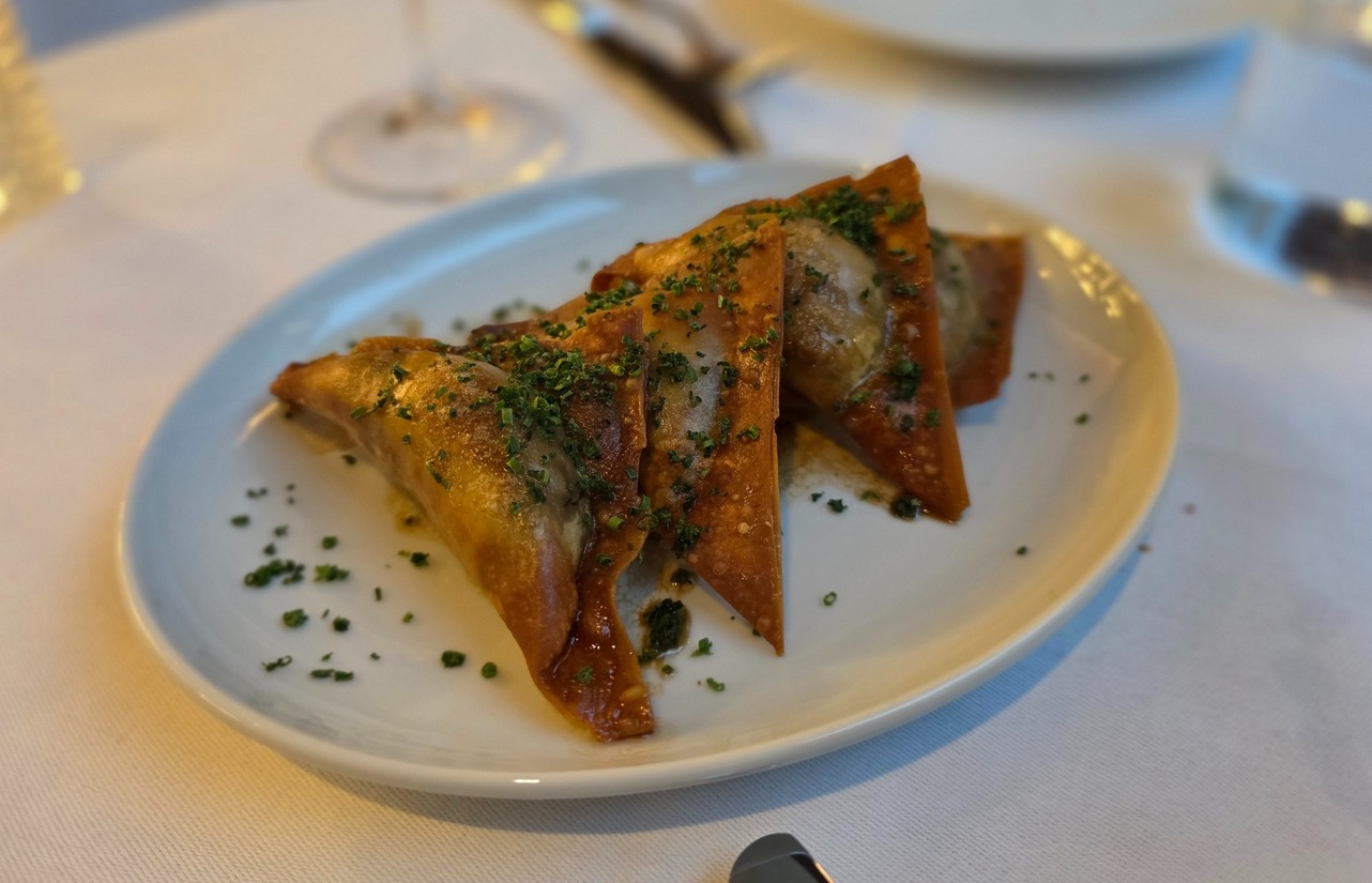 Op smaak koken is Timothy wel toevertrouwd. De hamachi gerold in shiso is een lekker smaakbommetje. De krokante dumpling gevuld met Baambrugs big en inktvis zo mogelijk nog meer. Er wordt een mooi gerijpt glas Margaux uit 2011 bijgezet. Al lekker bij deze gerechten, maar nog meer als een fijn aanloopje naar het vlees.