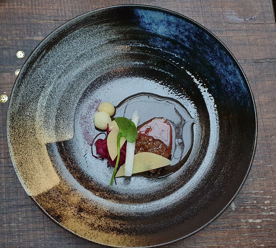 Ook het volgende gerecht, de ree, staat op het menu van Taiko. Een mooie stukje ree, op Kantonese manier klaargemaakt. In de Kantonese keuken draait het om de kleurcombinaties en ook contrasterende smaken die goed terug te zien zijn in de ree. De ree is mals, de jus sterk van smaak en de rodekool lekker knapperig. Op het stukje ree ligt gefermenteerde rijst, wat het gerecht een extra sterke smaak geeft. Het bijgerecht is een dumpling met garnalen, geserveerd in een zalig sausje, wat het gerecht helemaal afmaakt.