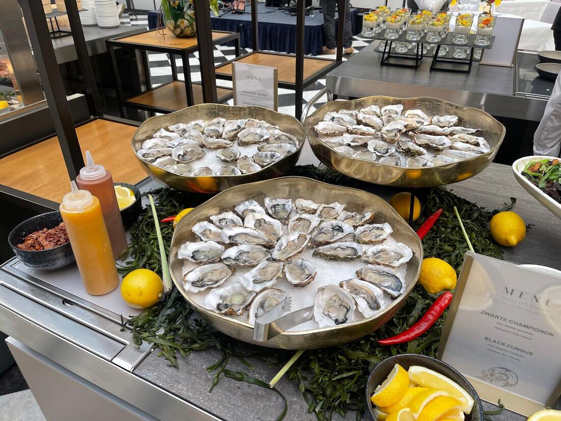 Met een eindeloos vol glas verse jus en champagne zat ik aan de meest decadente mimosa die ik ooit gehad heb, terwijl ik genoot van de livemuziek die op de achtergrond speelde. Een uitgebreid buffet – van fruits de mer en dim sum tot Pekingeend – en diverse stands waar chefs zeebaars, ossenhaas en garnalen vers bereidden, lieten ons een aantal rondes doen lopen.