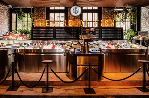 Drie jaar geleden bezocht de Buik Pesca voor het eerst, en waren we verrast door het concept; een vismarkt waar je zelf de vis aanwijst die de chef voor je bereidt. Inmiddels kunnen we het woord concept niet meer horen, maar eerlijk is eerlijk; hier is het concept tot in de puntjes uitgedacht en doorgevoerd. Dit maakt het een plek voor mensen die het leuk vinden om vermaakt te worden. Anoniem aan tafel gaan, bestellen, eten en weg is er niet bij. Vanaf het moment dat je binnenkomt is er volle bak interactie. Eerst met de ‘marktlui’ die je enthousiast maken voor al het heerlijks dat er ligt uitgestald, waarna je nadat je je keuze hebt gemaakt, doorloopt naar de wijnbar om je ook hier te laten adviseren. Weer iemand anders begeleidt je vervolgens naar je tafel waar je mag ontspannen.