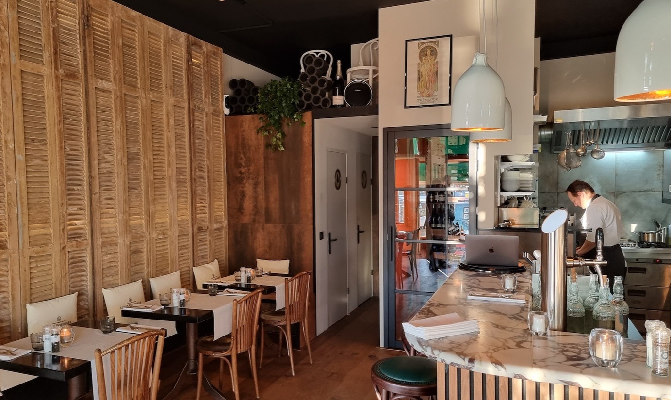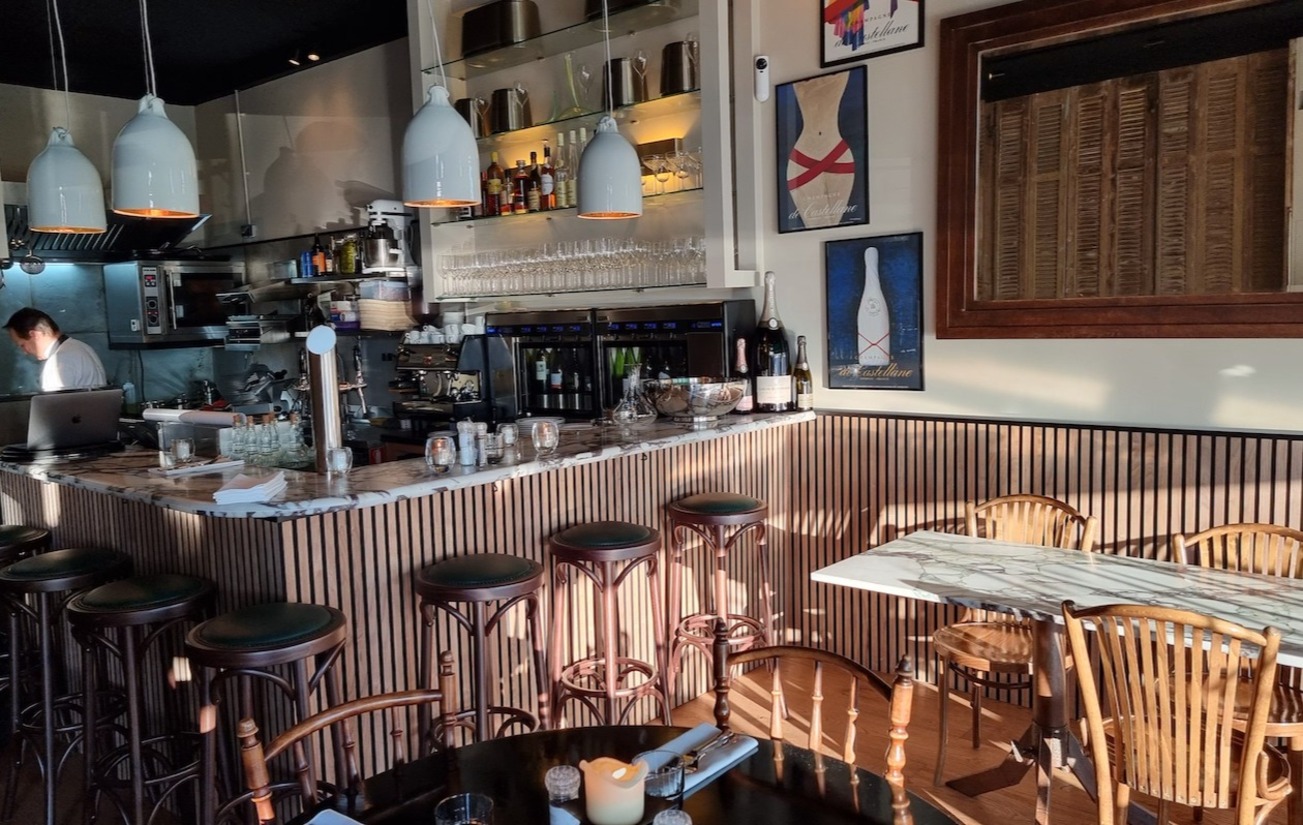Gastvrijheid staat hier hoog in het vaandel. De zaak ademt een lekkere Franse sfeer, met leuke zitjes, veel hout, een marmeren bar en wanden met ingelijste posters van het champagnemerk de Castellane.