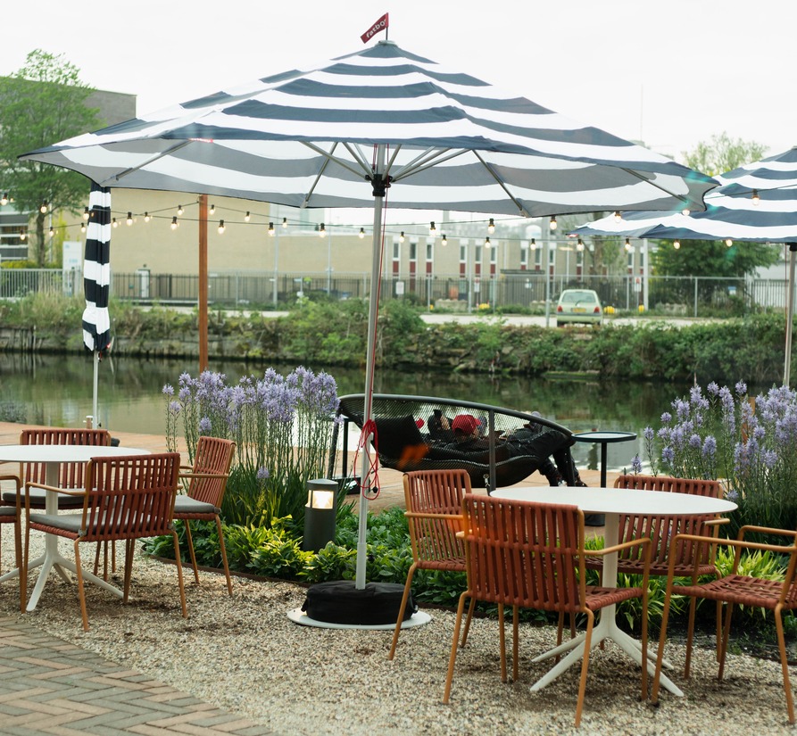Geen paniek als al je drankjes op zijn na een middagje varen op een zomerse dag, want nieuwe hotspot Deck in Amsterdam-Noord heeft aan de steiger van het terras genoeg plek om aan te meren met je boot.