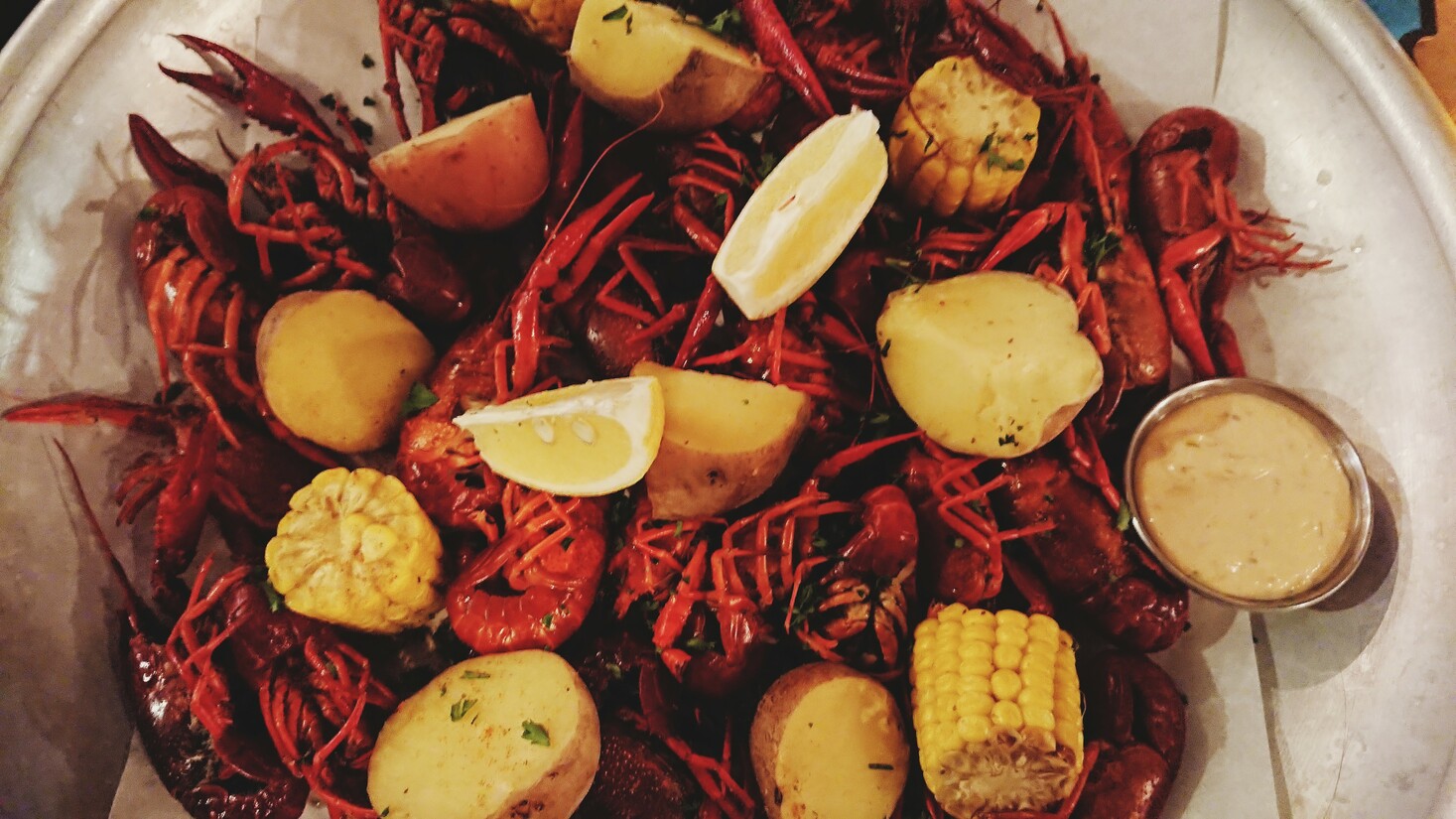 Eens in de zoveel weken organiseren ze een wisselend lunchmenu op zondag. Wij gaan langs voor de Crawfish Boil: een grote schaal rivierkreeften, geserveerd met gebakken aardappels en stukjes maiskolf. Als we twintig minuten zitten, wordt er een grote schaal met rivierkreeftjes voor onze neus gezet. We kijken even verbaasd. Hoe moeten we dit opeten? Enno legt het uit en wij gaan aan de slag. Het blijkt echter nog niet zo makkelijk. Na een flink getrek en gedraai van pootjes, hoofden en lijfjes krijgen we de smaak toch te pakken. Je kunt blijkbaar alles van het kreeftje eten, al vinden wij het vlees dat achterin de staart zit het lekkerst. Alsof we een hapje nemen van een garnaal. Bij de Crawfish Boil wordt een ijskoud biertje geserveerd van Brewdog, een Engelse brouwerij, dat goed smaakt bij dit visfestijn. Als we de schaal bijna leeg hebben, ziet onze tafel eruit als een slagveld, onder de spetters en stukjes kreeft. Maar dat lijkt niemand iets uit te maken, dus ons ook niet.