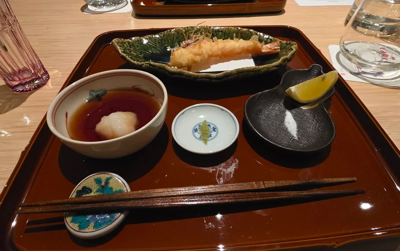 We worden op z’n Japans welkom geheten. Formeel, maar die formaliteit wordt gelukkig bijna direct omgezet in een fijne sfeer waar onze bediening met alle geduld de gerechten en sake’s uitlegt. Hatsune is geen sushi-restaurant, maar biedt kappo, een intieme persoonlijke stijl van koken, of een Kaiseki menu keuze. Wij kiezen voor het laatste. Kaiseki is Japanse fine dining met verschillende gangen die staan voor de seizoenen. Waarbij wij gaan voor het 6-gangen Tempura Kaiseki menu natuurlijk met bijpassende sake’s.