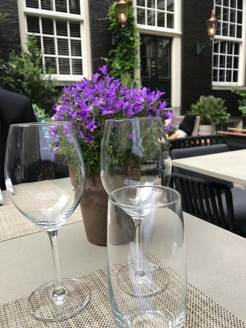 Wie door de authentieke zestiende-eeuwse poort van The Dylan loopt, betreedt een oase van sereniteit in de hectische grachtengordel. Het is zondagmiddag en we nemen plaats op de beeldschone binnenplaats, die aandoet als een hofje.