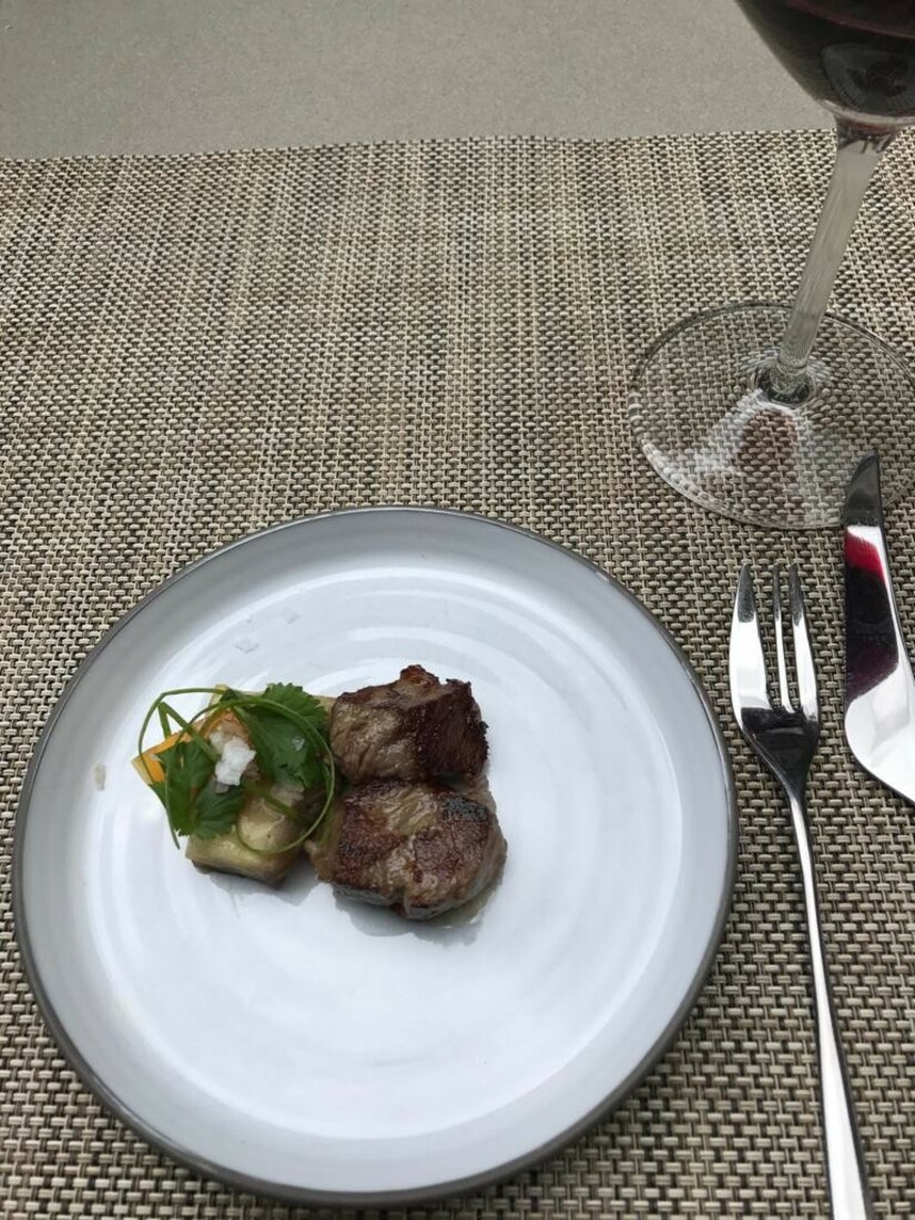 Texels lam, dat op je tong lijkt te smelten, met romige aubergine en een toefje koriander. Dit gerecht is de perfecte Sunday roast, als je het ons vraagt. De wijn licht het net de koriander een beetje op, dus de pairing is hier zoals je hem wilt ervaren: de smaken tillen elkaar tot een hoger plan en vormen een verrassende smaakeenheid.
