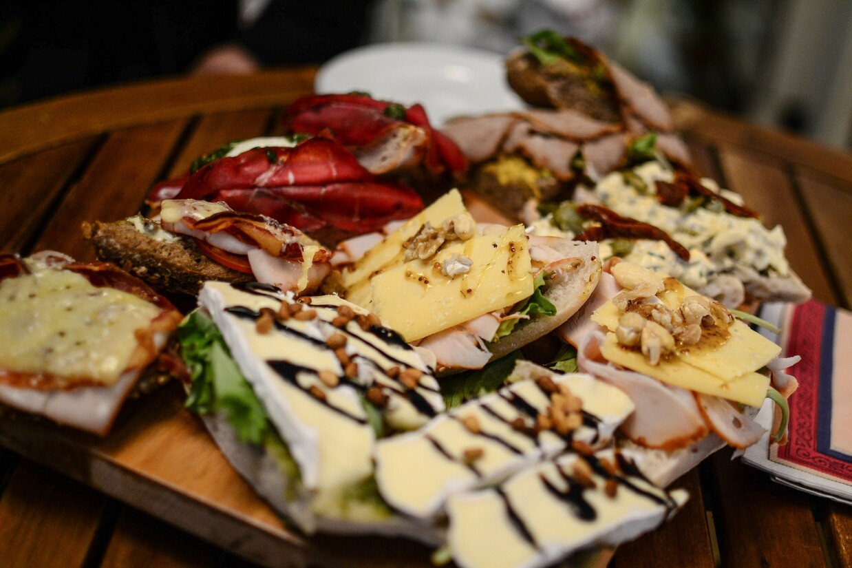 Als we al een tijdje al het lekkers aan het bekijken zijn, krijgen we trek. We besluiten te lunchen en op aanraden van het stel kiezen we voor het “Weekendertje”: verschillende broodjes op een plank, uitgezocht door de chef. Vrij snel nadat we hadden besteld, wordt de smakelijke verschijning op een hoge tafel gelegd waar we met krukken aan zitten. De verschillende sandwiches zijn rijkelijk belegd en de smaken zijn goed op elkaar afgestemd. De ei-truffelsalade is goed van smaak en de zoutige crispy pancetta erop maakt het af. Ook het belegde broodje met bresaola, warme buffel mozzarella, truffel- balsamico en pijnboompitten is zeker voor herhaling vatbaar. Het brood is knapperig, de vleeswaren zijn zacht en de kazen zijn sterk van smaak.De knusheid van Le Salonard heeft zeker iets, de grootte van de winkel betekent daarentegen dat je geluk moet hebben als je een zitplekje hebt kunnen bemachtigen. Natuurlijk kun je de lekkernijen ook meenemen om thuis of ’s zomers in het (Sarphati)park op te eten. We kunnen niet wachten om nog een keer terug te komen en meer lekkers te proberen.