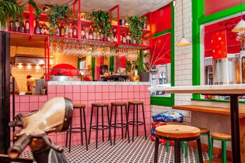 Wat begon als hobby van Bas en Idske in de tuin, werd professioneel bakken op feesten en partijen en resulteert nu in een echte eigen pizzeria in een van de leukste buurten van Amsterdam. Het heet dan ook niet voor niets Pizza Project, want een project; dat kun je het zeker noemen! Sinds mei afgelopen jaar zit op de hoek van de Wilhelminastraat met de Pieter Langendijkstraat, Pizza Project. Buiten nodigt het grote (verwarmde) terras aan weerszijden van het restaurant meteen uit om in het zonnetje te zitten. Binnen voel je je thuis door de verschillende soorten tafeltjes, de roze tegeltjes en de grote bar waarachter twee Italiaanse pizzabakkers de meeste heerlijke pizza’s uit de oven toveren.
