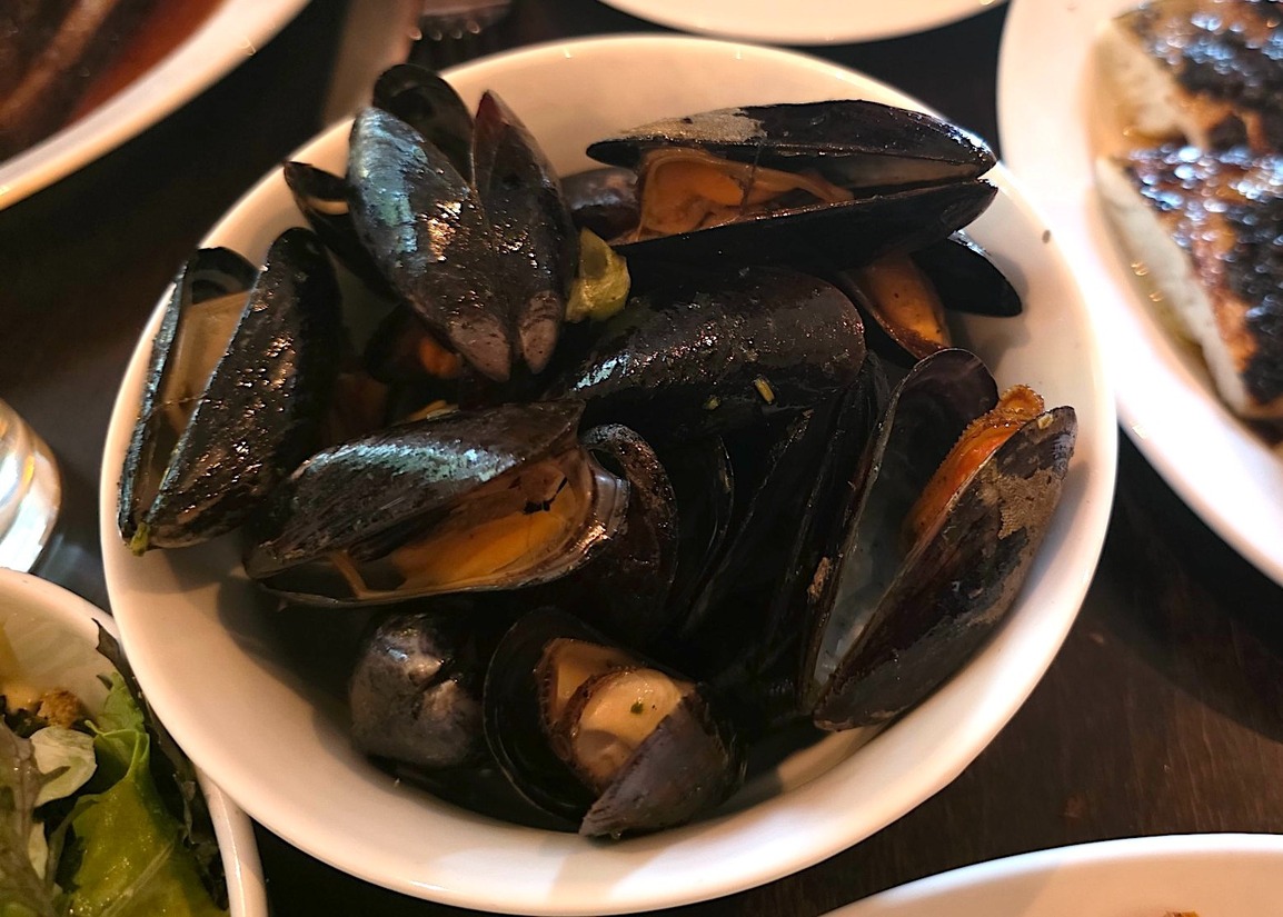 Een schaaltje mosselen wordt geserveerd, vanuit de houtoven met een heerlijk rooksmaakje en een apart garnituur van seizoensgroenten van wittekool, tot witlof en venkel. Simpel maar ook weer geslaagd.
