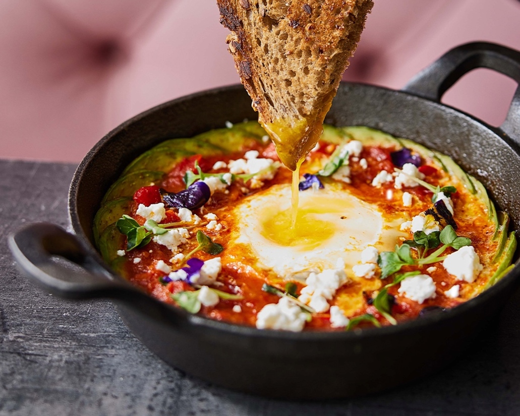 De ‘Sassy Salmon’ is het minst spannende, maar wel een super gezond gerecht. Gesauteerde spinazie met geroosterde broccoli, haricots verts en zalm met ‘on top’ een ’avocado’roos. Onze absolute topper is de ‘Showshuka’ een variant op de klassieke Shakshuka, met een heerlijke zoete paprika-tomatensaus, een daarin gepocheerd ei, feta in een rand van avocado. Geserveerd met toast (zie foto hierboven).