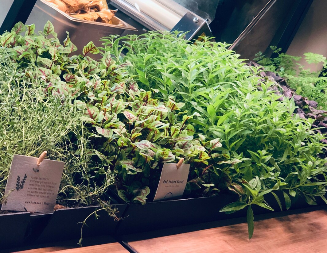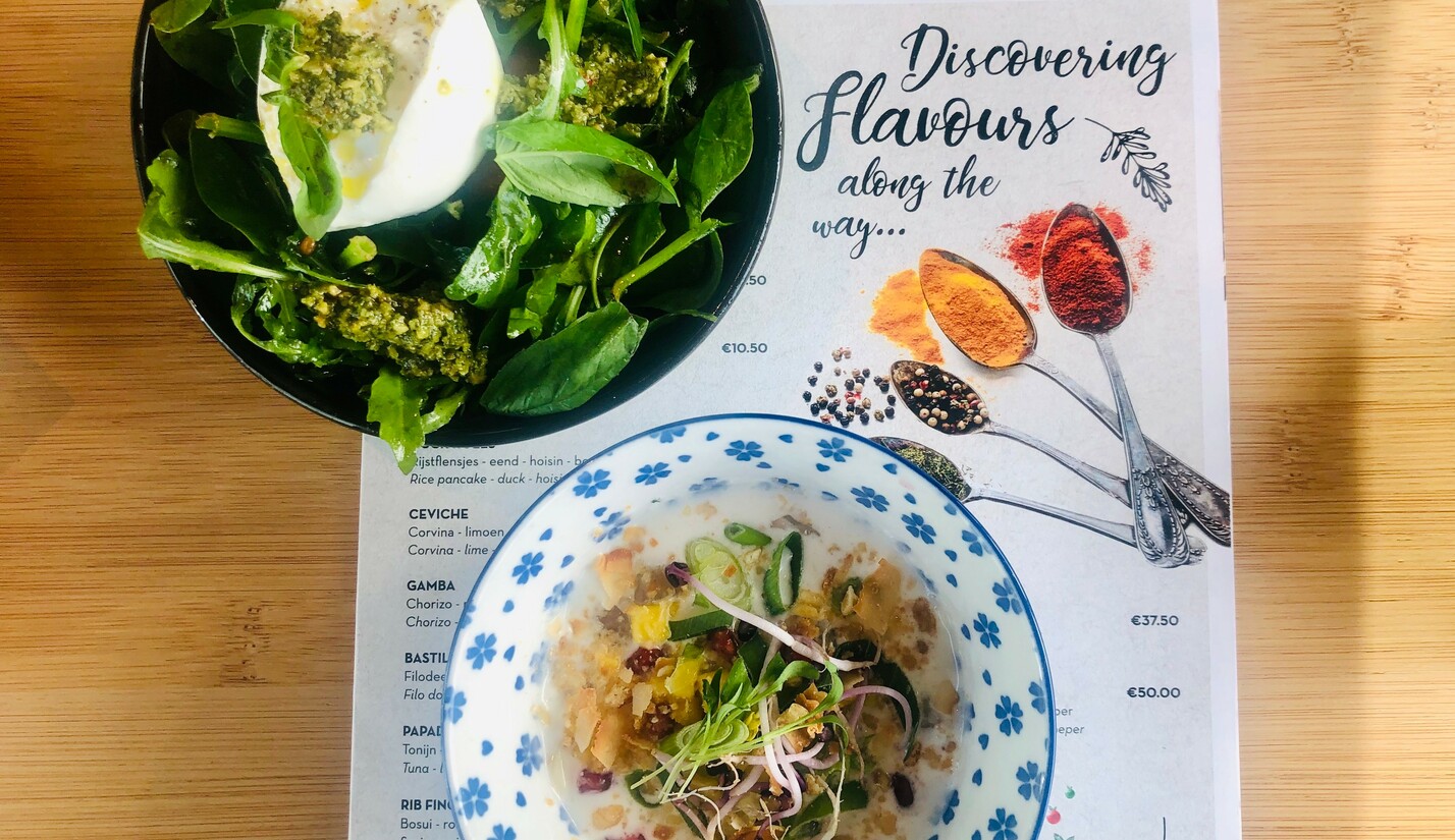 Bij The Traveller worden gerechten bereid met kruiden uit een eigen kruiden‘tuintje’, te vinden vlak naast de ronde open keuken. Dit geeft niet alleen aan hoe vers en gezond de producten uit de keuken komen, maar ook hoe toegankelijk er wordt gekookt bij The Traveller. Na een aantal van die kruiden te mogen hebben geproefd, vinden wij ze vervolgens ook weer terug in de burrata salade en de sandwich met humus en gegrilde groenten. En ook hier weer in terug te vinden de wereldse veelzijdigheid van kruiden en smaken, kleuren en geuren. De crispy chicken (blauwe maïs) tortilla en de ceviche, waar wij de uitgebreide brunch mee afsluiten, zijn zeker onze favoriet.