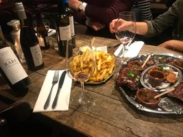 De keuze aan Belgische bieren is groot en de wijnen zijn betaalbaar. Wij maken ons op voor het hoofdgerecht. Onze gastheer van de avond vertelt vol vuur over de menukaart en de klassiekers waarvoor mensen uit de hele omgeving naar Par Hasard komen. Ons rest maar een oplossing: doe ons maar alles, is dit ook mogelijk? Wat er vervolgens aan ons wordt gepresenteerd is een tafel vol gerechten. Waar moeten we beginnen? Laten we beginnen bij de knaller van de avond, de frikandel speciaal. De frikandel van eigen receptuur springt er echt uit. Zo lekker kan een frikandel speciaal zijn. Als Brabander is het ook fijn om te zien dat ze niet de vraag stellen of je deze met ketchup of curry wilt. Dit zijn mensen die weten wat ze doen en ketchup hoort niet thuis op een frikandel speciaal.