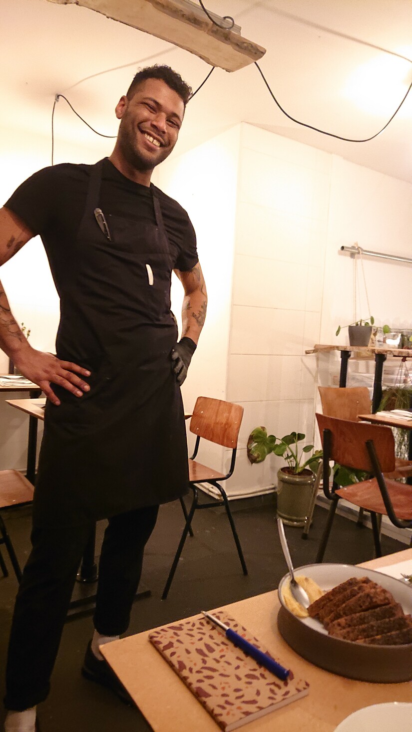 Alle gangen zijn verder leuk én smaakvol, maar vooral het dessert met bananenschil maakt indruk. In de wereld van no-waste is bananenbrood een bekende tafelgast, maar ook daar blijft wat over van de (te) rijpe bananen: de schil. Aan de chef dus de zelfopgelegde missie om daar creativiteit op los te laten en zo te proberen of er wat lekkers van te maken is. Want dat is wat Bryce wil doen; het gaat eigenlijk meer om de reis dan om de bestemming. Als die laatste lekker is, extra winst. In het geval van die bananenschil is dat ook zo. Je merkt hoe diep Bryce inmiddels in het proces zit: hij introduceert het als ‘gewoon drie dagen bewerkt’, maar bij doorvragen is het wel iets complexer: koken, siroop trekken, in de siroop doorkoken, drogen. En nog meer, maar dan blijft er wel een dessert over waarbij de pikzwarte bananenschil de ster is. De textuur is spannend, de smaak gewoon heel prima. Zo zie je maar.