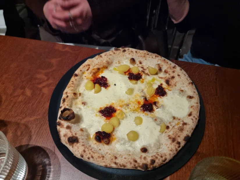 Dat gevoel was er ook. Er hing trots in de lucht, zonder kapsones. De bediening was opvallend opgewekt en vriendelijk. Het uitserveren ging snel en efficiënt, ontspannen en met humor. Dat draagt veel bij. Het eten is goed, maar de sfeer tilt het geheel op. Je blijft daardoor makkelijk langer zitten. Dit is een plek waar je met plezier terugkomt. Voor verse pizza, lekker eten, wijn en rumoer. Kom voor de energie. Blijf voor het deeg.