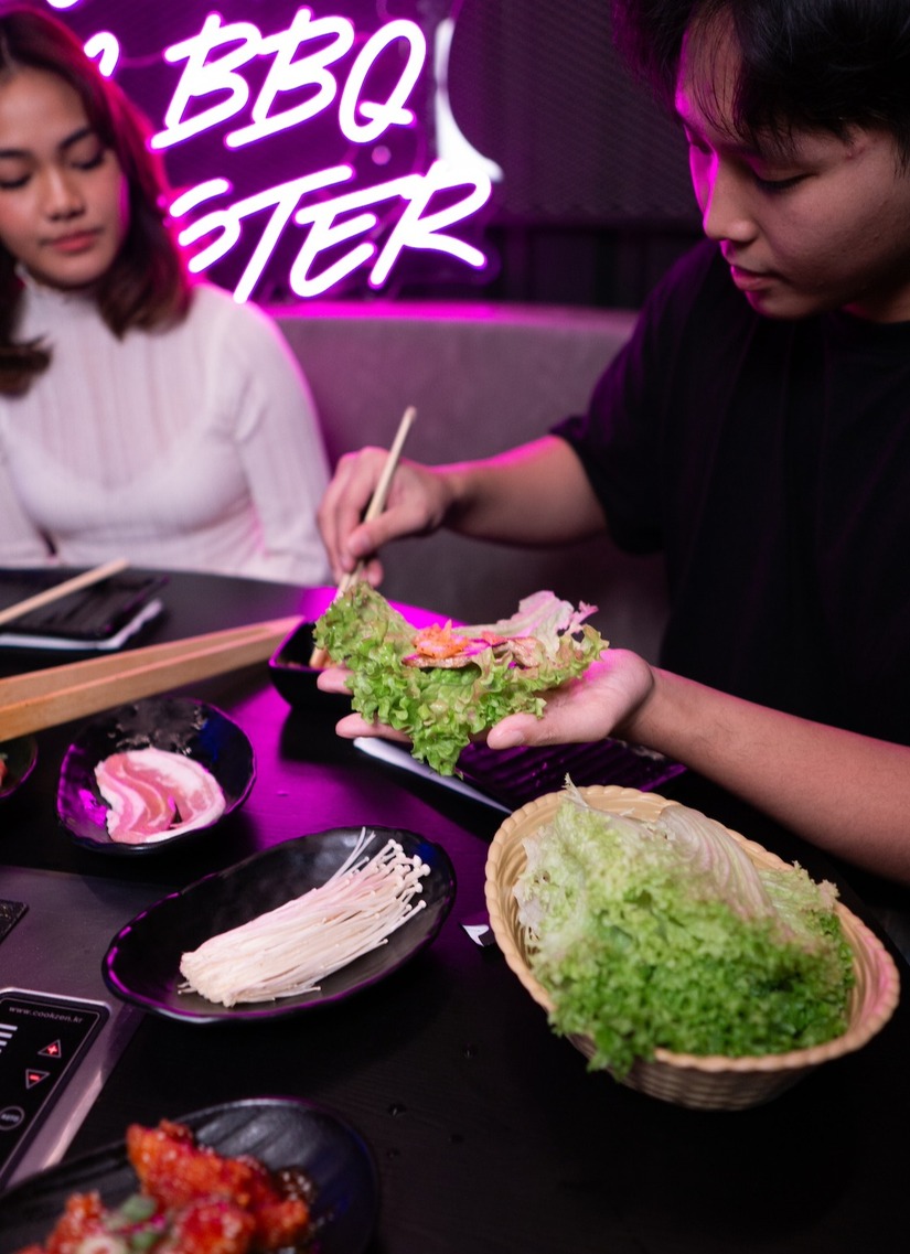 Deze all-you-can-eat Koreaan heeft het strak geregeld. Een QR-code die je leidt naar de handig ingedeelde menukaart. Bestellen lukt iedereen met een mobiele telefoon. En de in de tafel ingebouwde BBQ heb je sneller aan de praat dan je Weber of Green Egg.